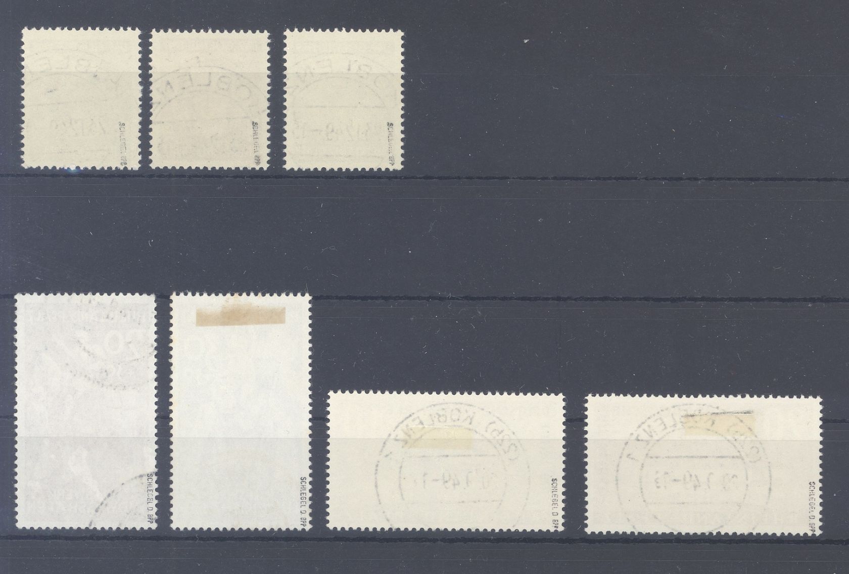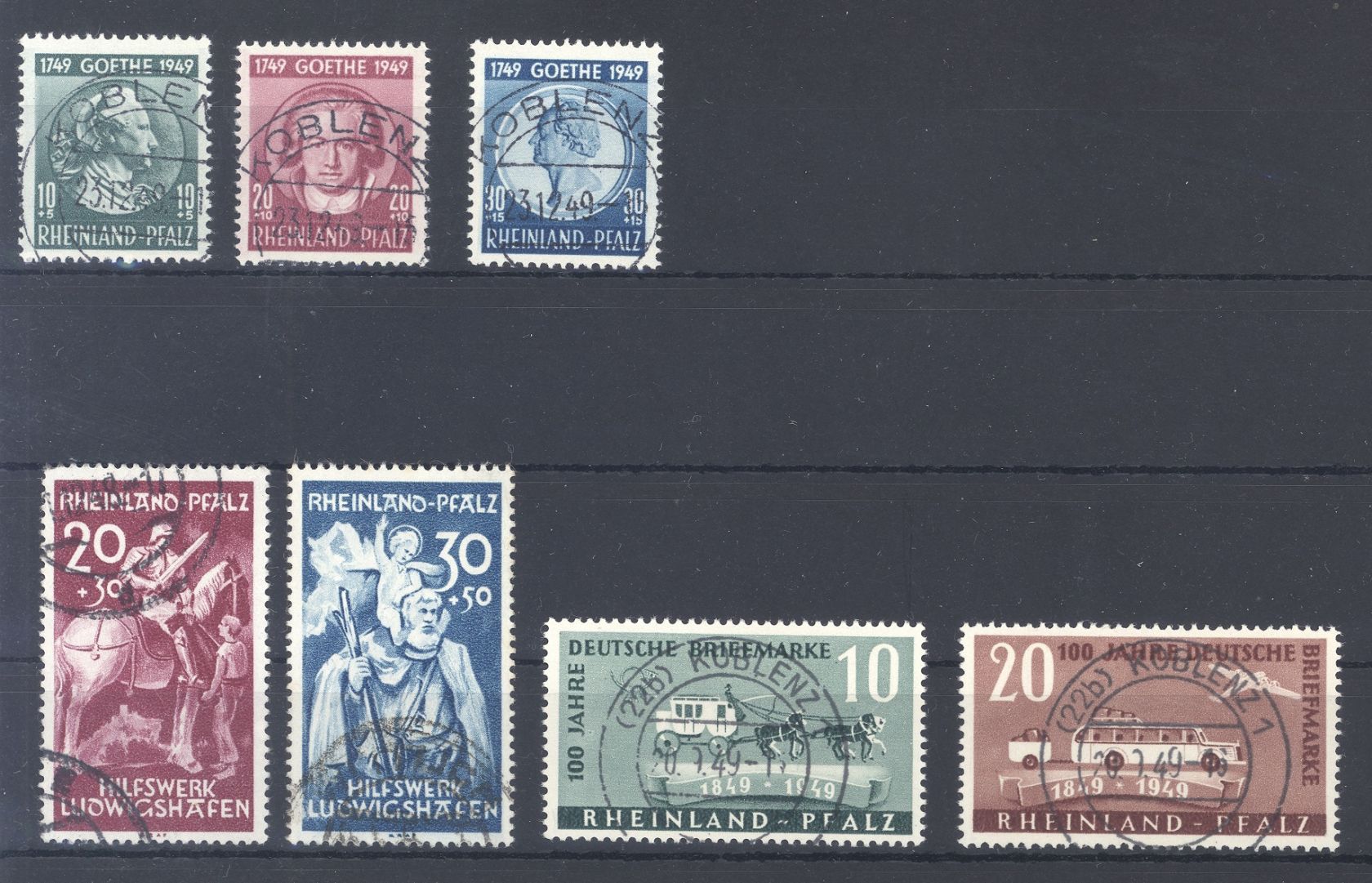 Französische Zone Rheinland Pfalz, kleinerer gestempelter Posten bestehend aus Michel Nummer 30/31, 46/48 und 49/50 auf Steckkarte. Jeder Wert ist geprüft BPP.