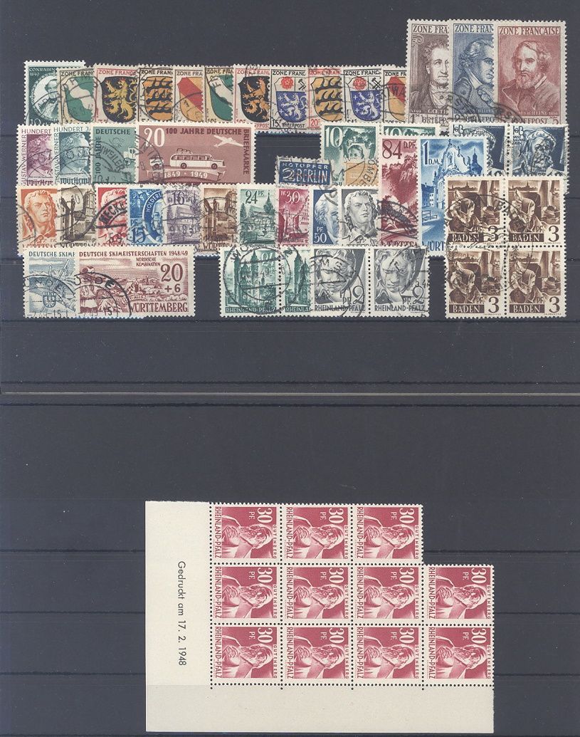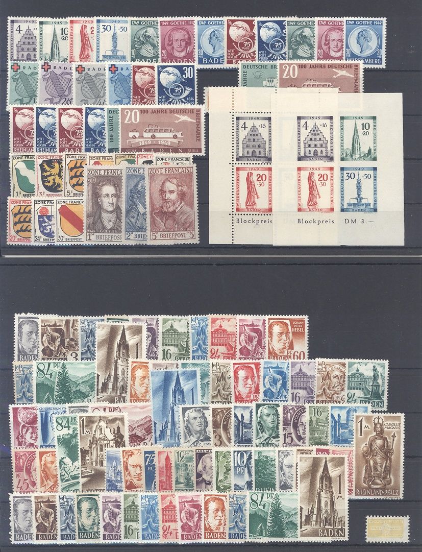 Französische Zone, umfangreicher */**/gestempelter Posten mit auch vielen besseren Werten und Sätzen mit z.B. Baden für komplett ungebraucht * mit 170,00 Euro auf drei Steckkarten, einfach zusammengesteckt. Vollkommen unberechnet, sollte ein nettes Schnäppchen...