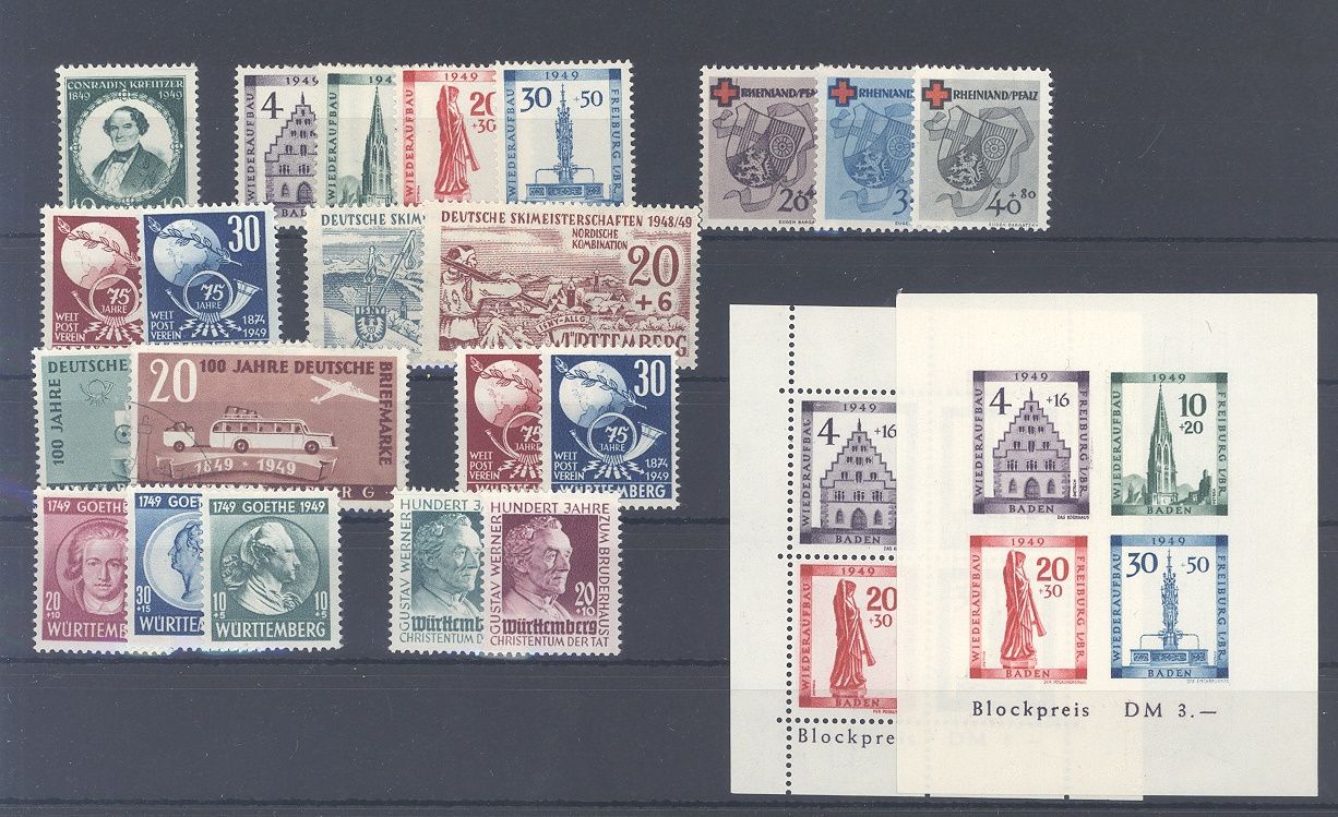 Französische Zone, umfangreicher */** Posten mit besseren Werten und Sätzen mit auch Baden Block 1 A+B, einfach zusammengesteckt. Sollte ein nettes Schnäppchen sein....