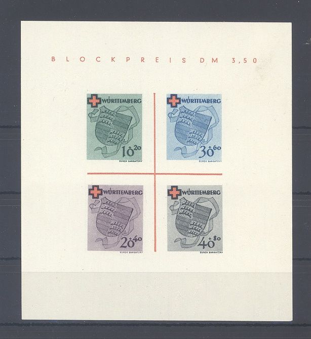 Französische Zone Württemberg Block 1 ungebraucht (*) wie ausgegeben mit einem kleinen Fleckchen rechts, sonst ein ordentlicher Block.
