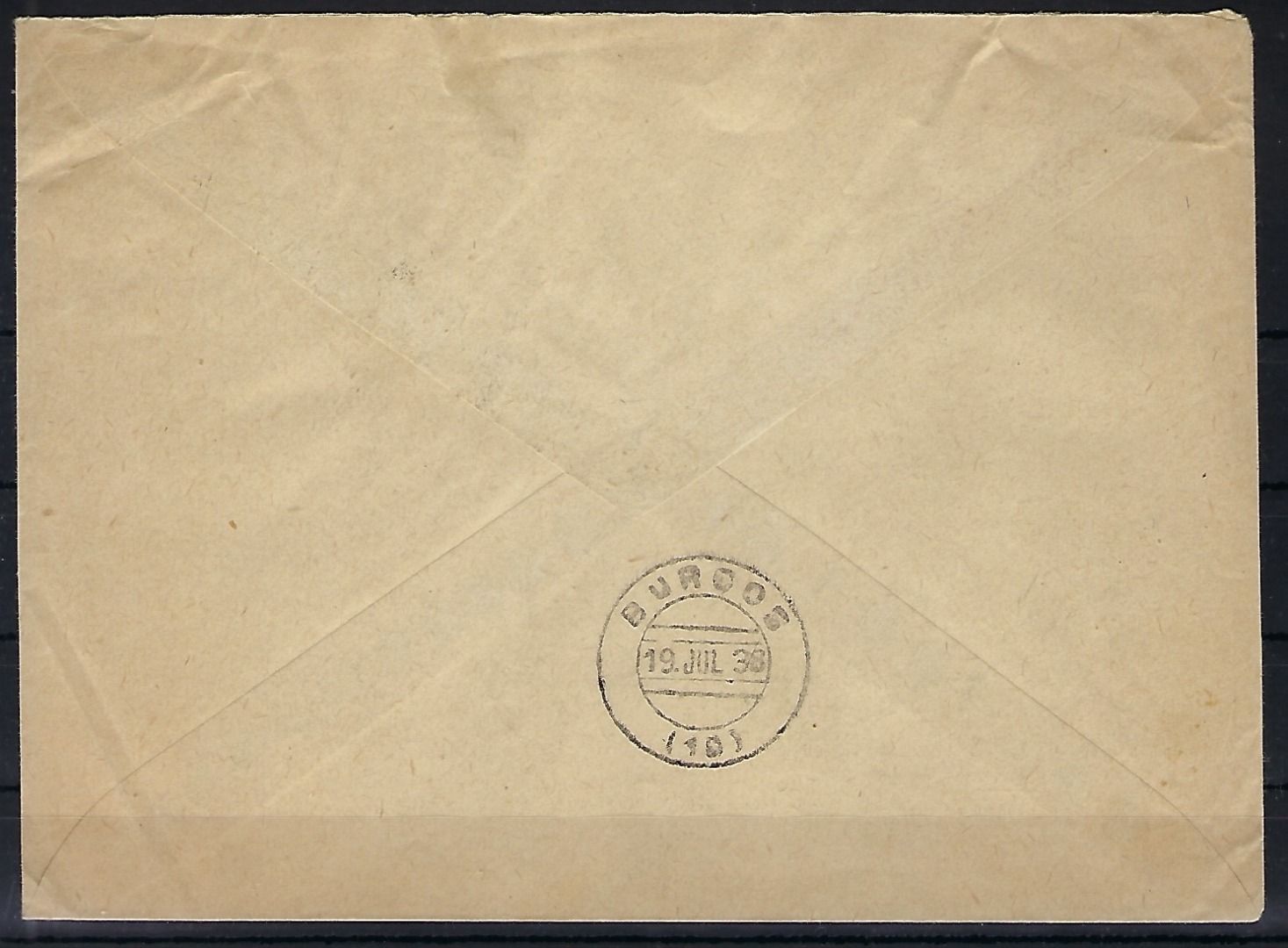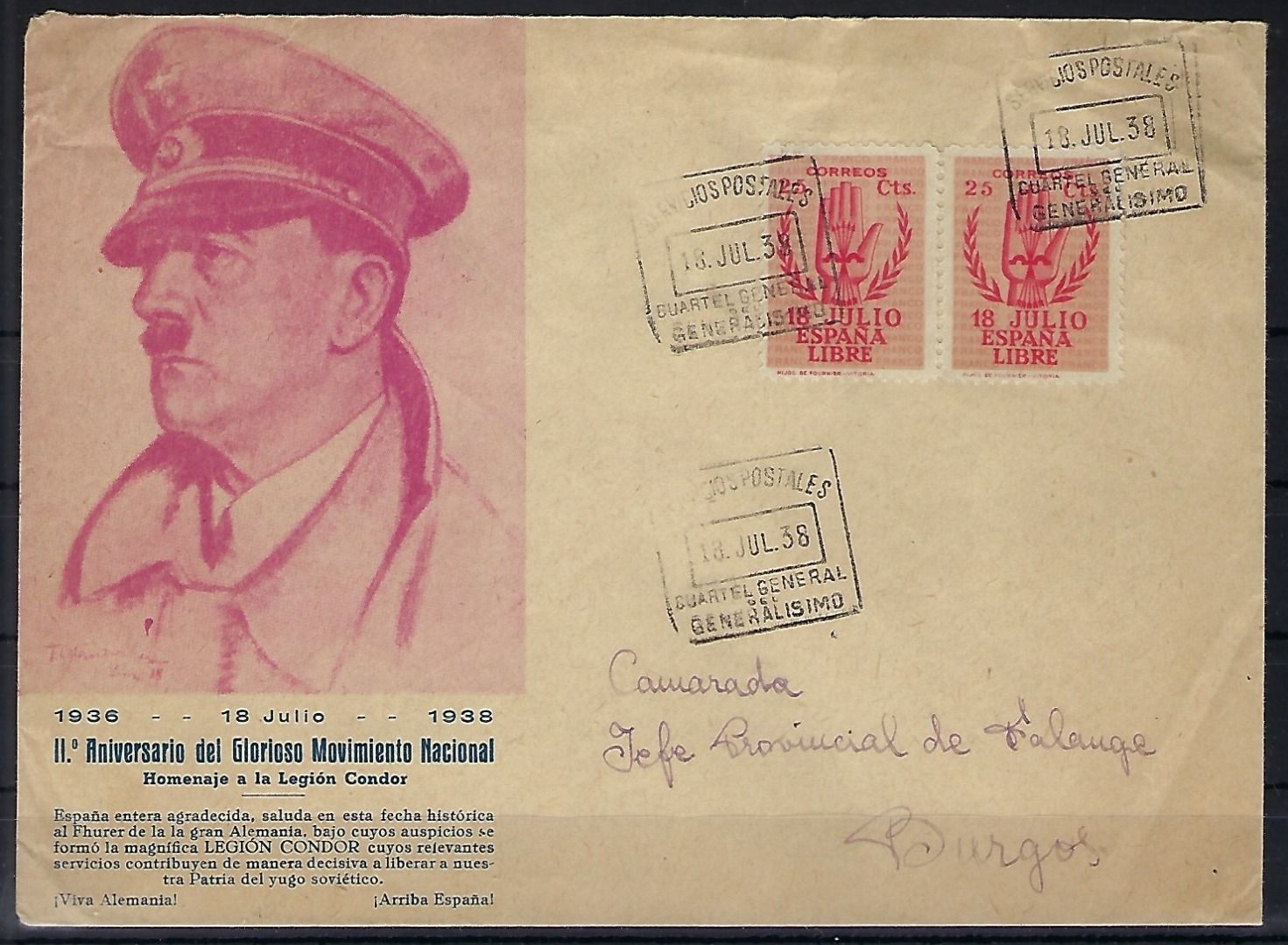 Gedenkbrief 2. Jahrestag Nationalbewegung 1936-1938, gesandt von Burgos (Hauptquartier des Generalissimus), innerhalb Burgos