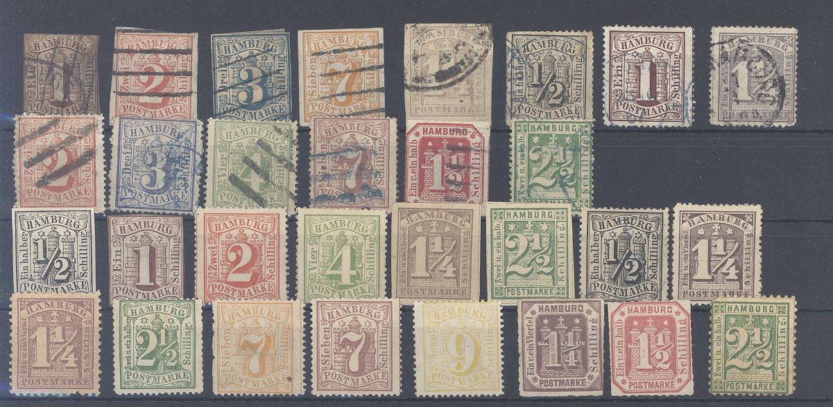 Hamburg, recht umfangreicher Posten in unterschiedlicher Erhaltung mit auch vielen gestempelten Werten auf Steckkarte, einfach zusammengesteckt. Vollkommen unberechnet, sollte ein nettes Schnäppchen sein.