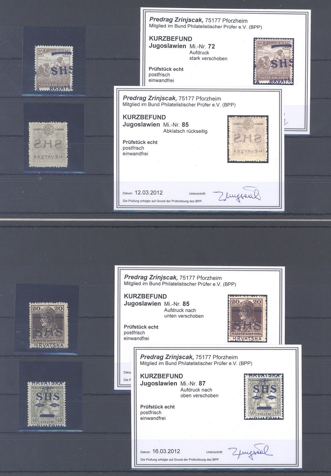 Jugoslawien, vier verschiedene ** Werte mit Besonderheiten aus Michel Nummer 72/87 als Posten. Für jeden Wert liegt ein Befund BPP vor, ist mit eingescannt, hat bereits einiges gekostet.
