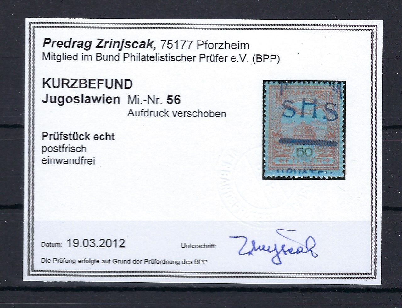Jugoslawien / SHS-Kroatien, Mi 56 ** Aufdruck verschoben, KB Zrinjscak