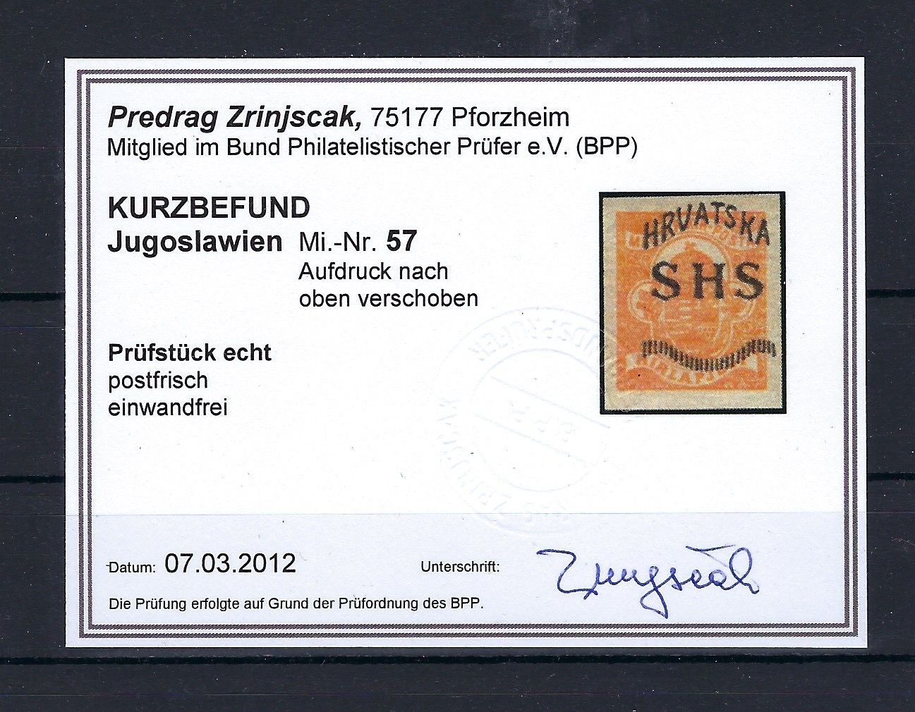 Jugoslawien / SHS-Kroatien, Mi 57 ** Aufdruck verschoben, KB Zrinjscak