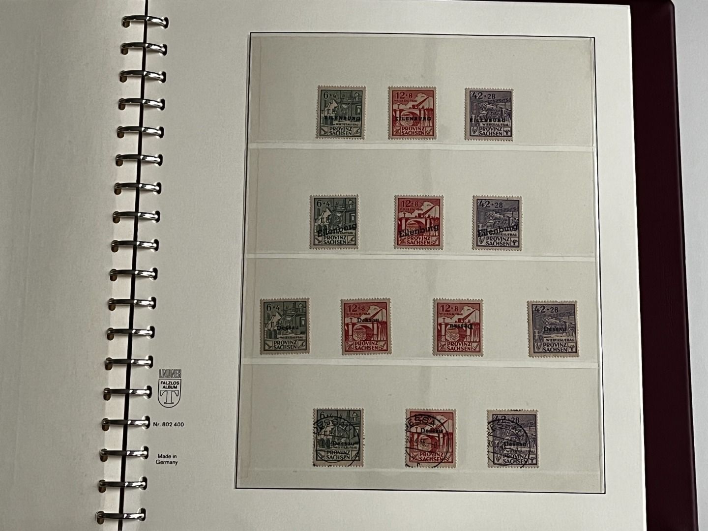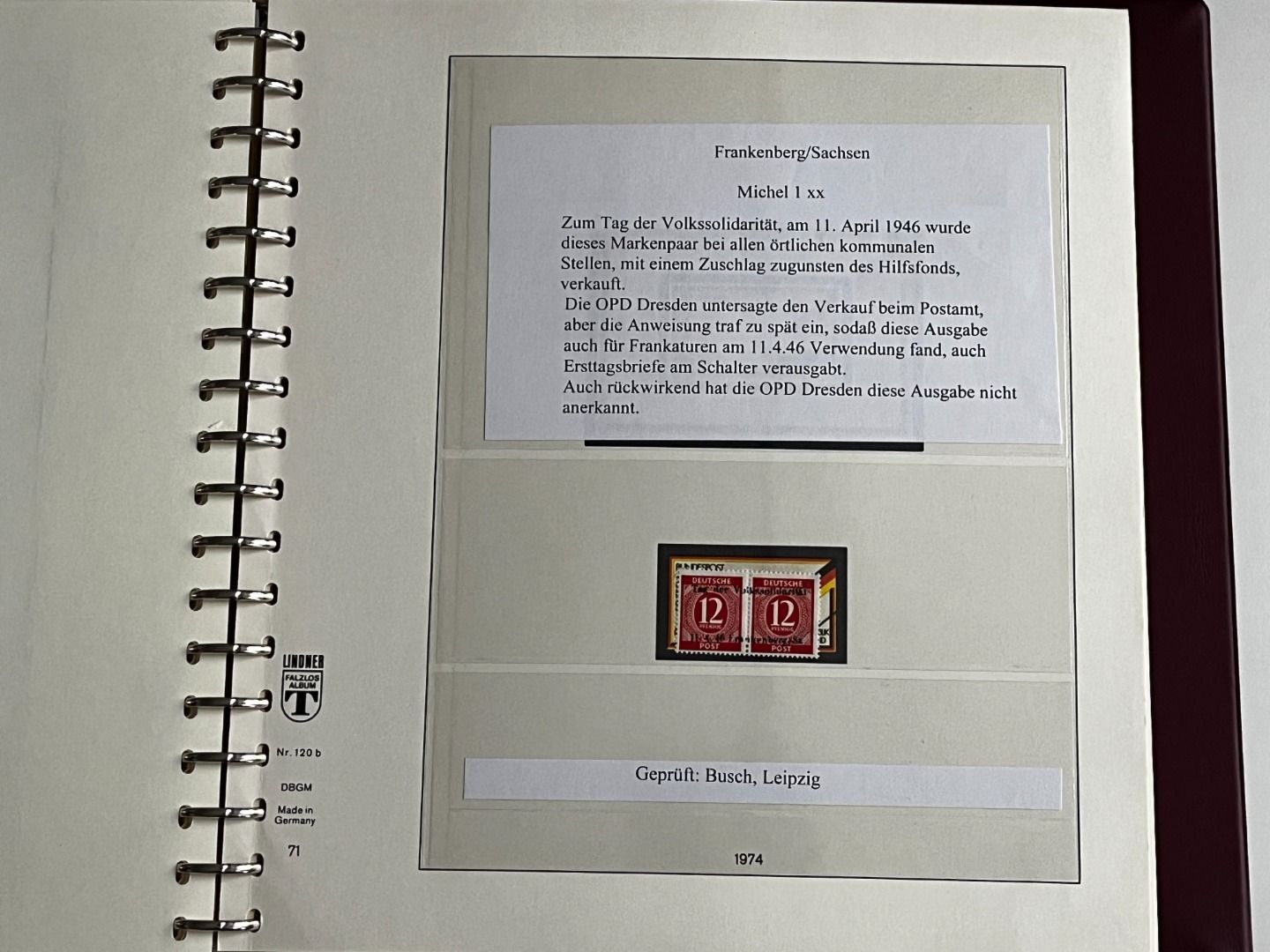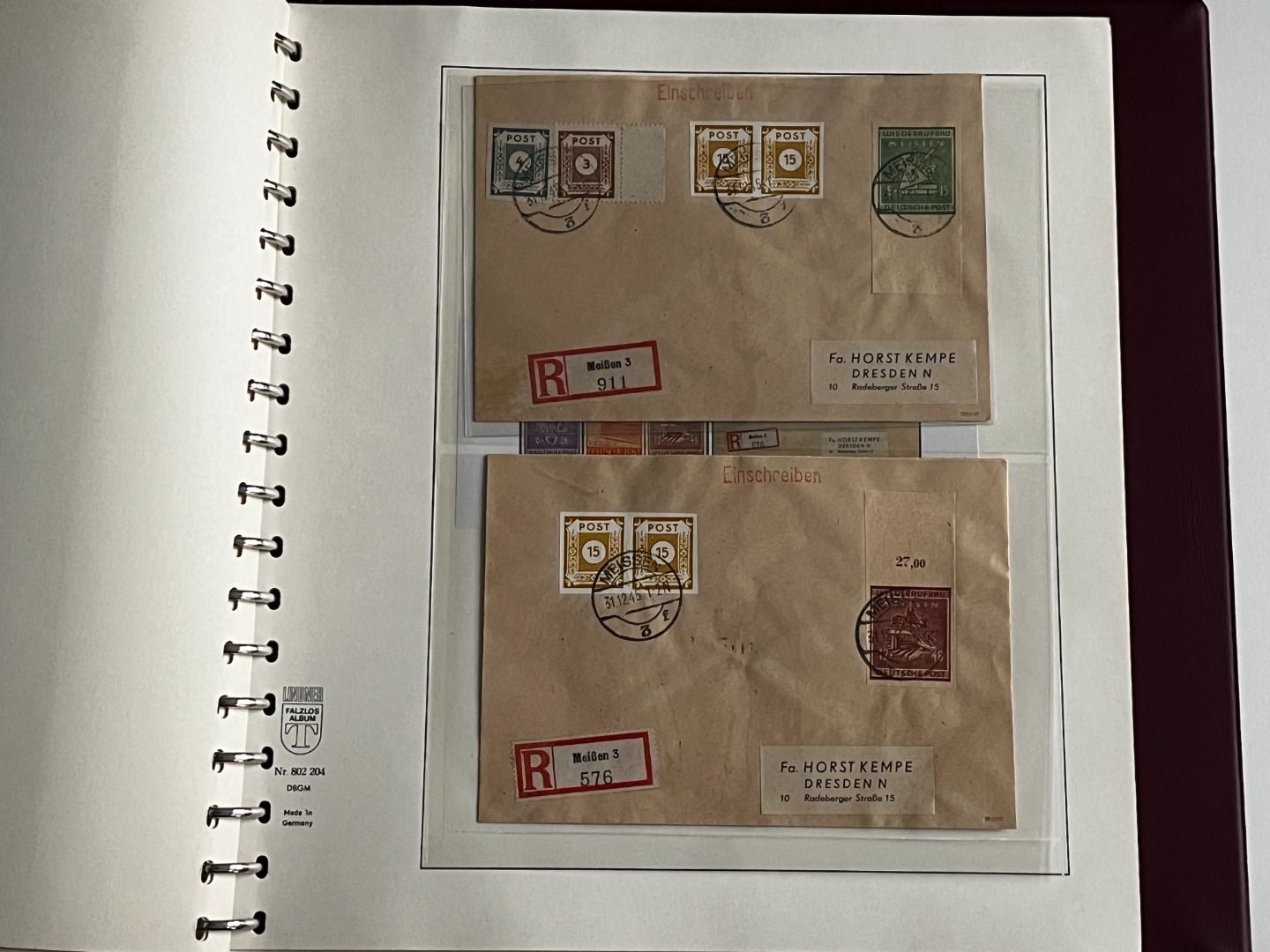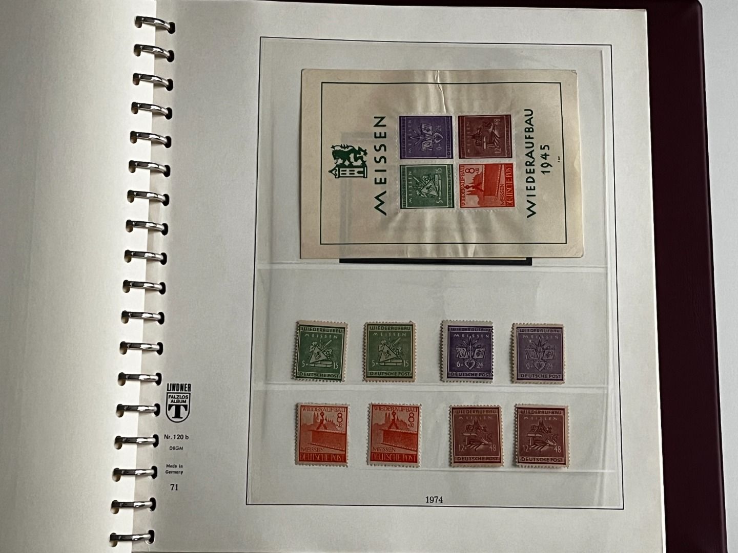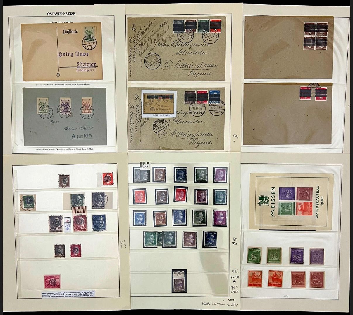 Lokalausgaben 1945 **/gest./Briefe: Gepflegte Sammlung im roten Lindner-Vordruckalbum, gesammelt wurde überwiegend postfrisch bis auf wenige gest. Ausgaben und Briefe, gesichtet wurde auch der Meißen-Block, sowie diverse andere geprüfte Werte.