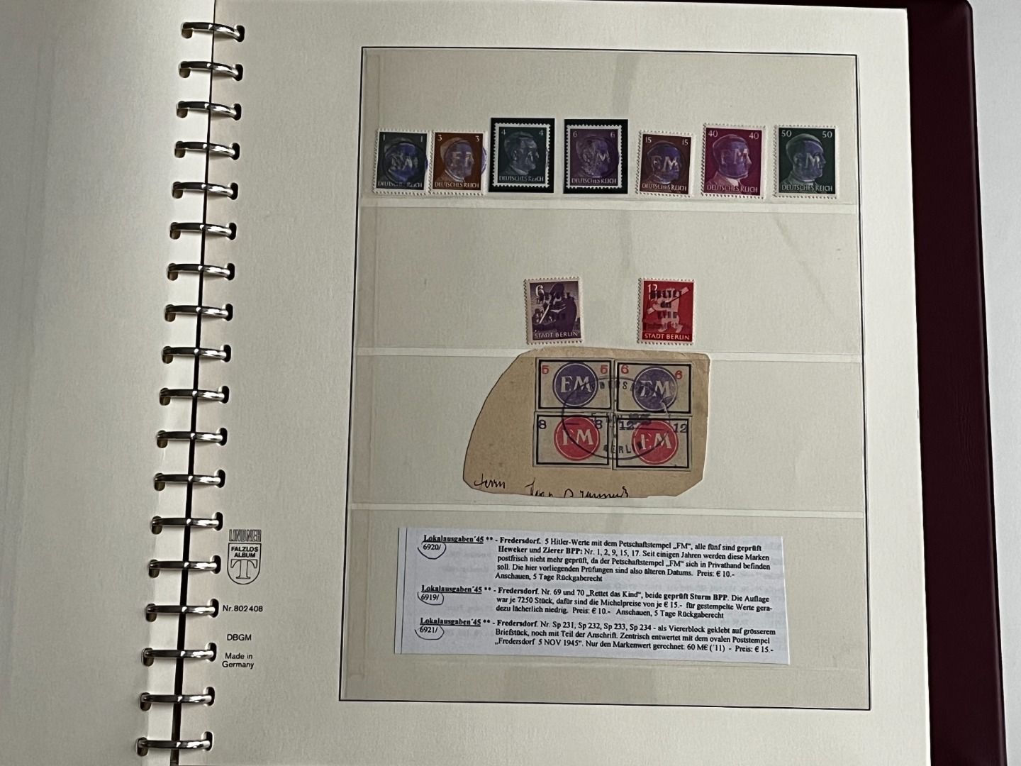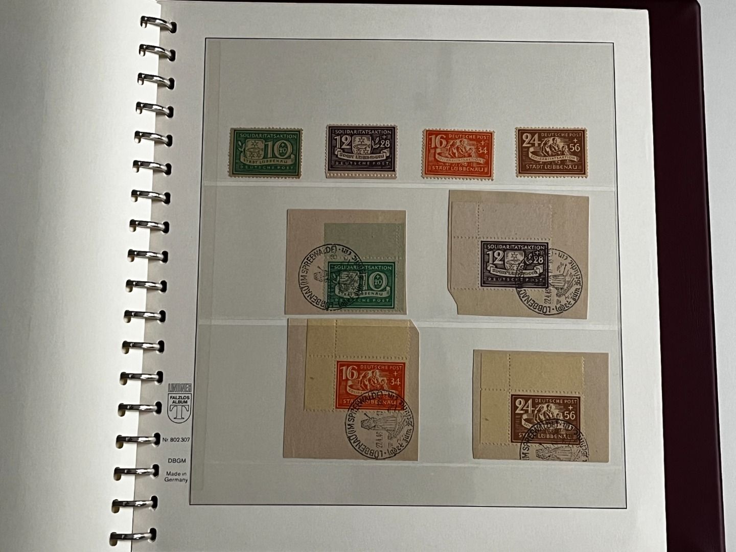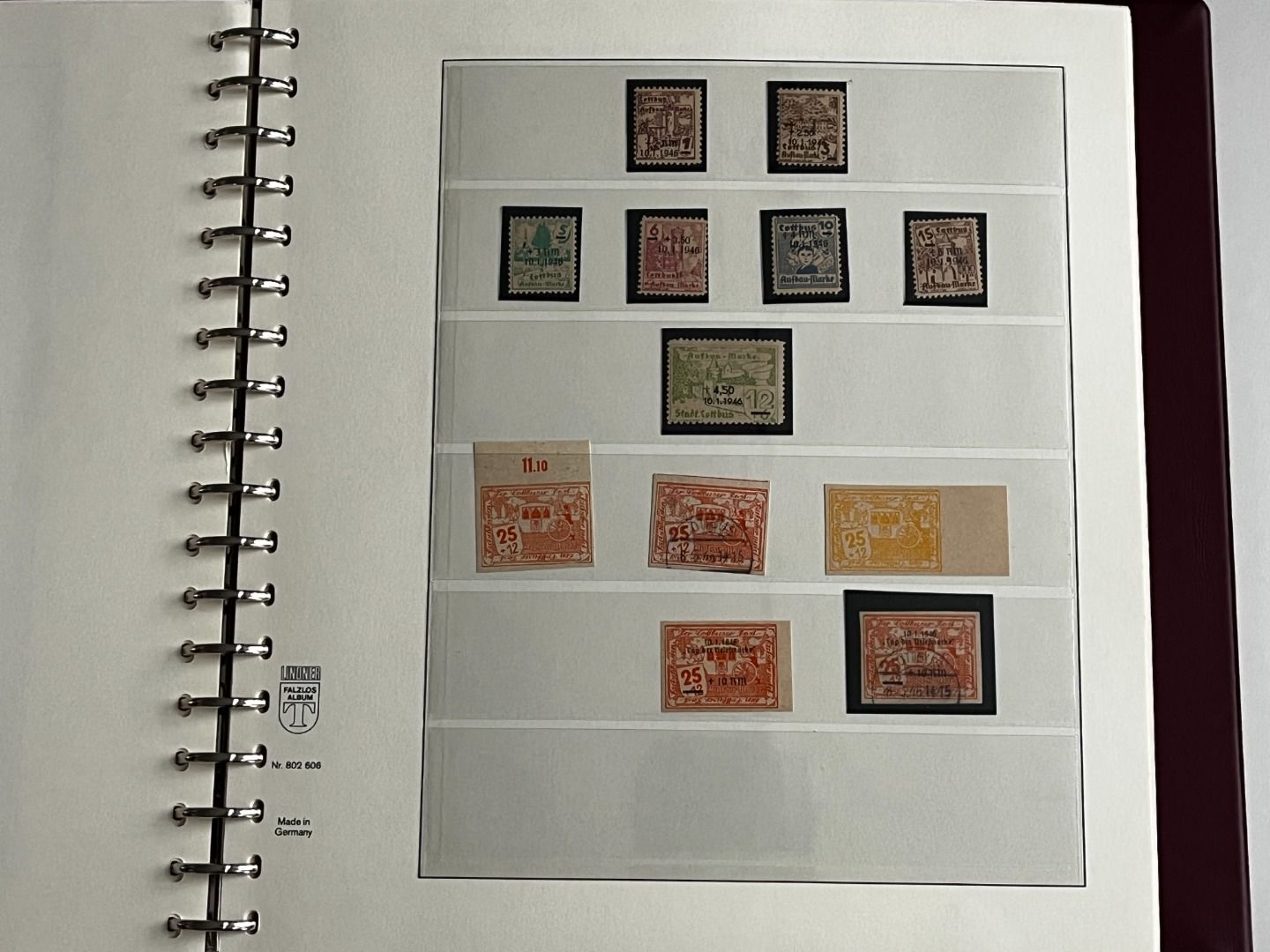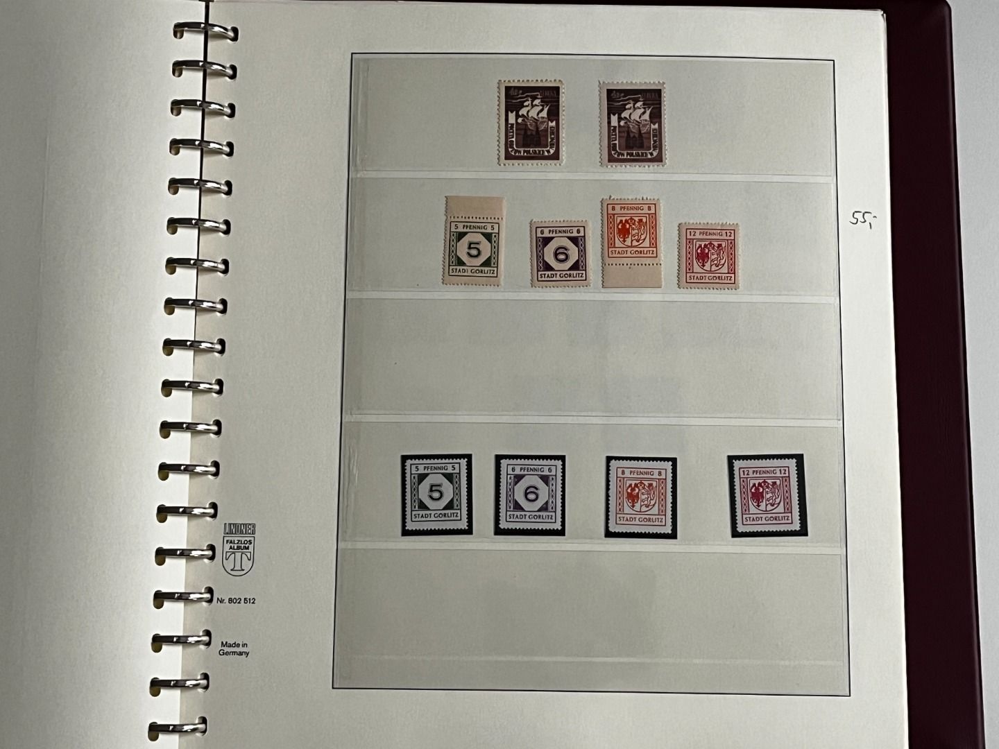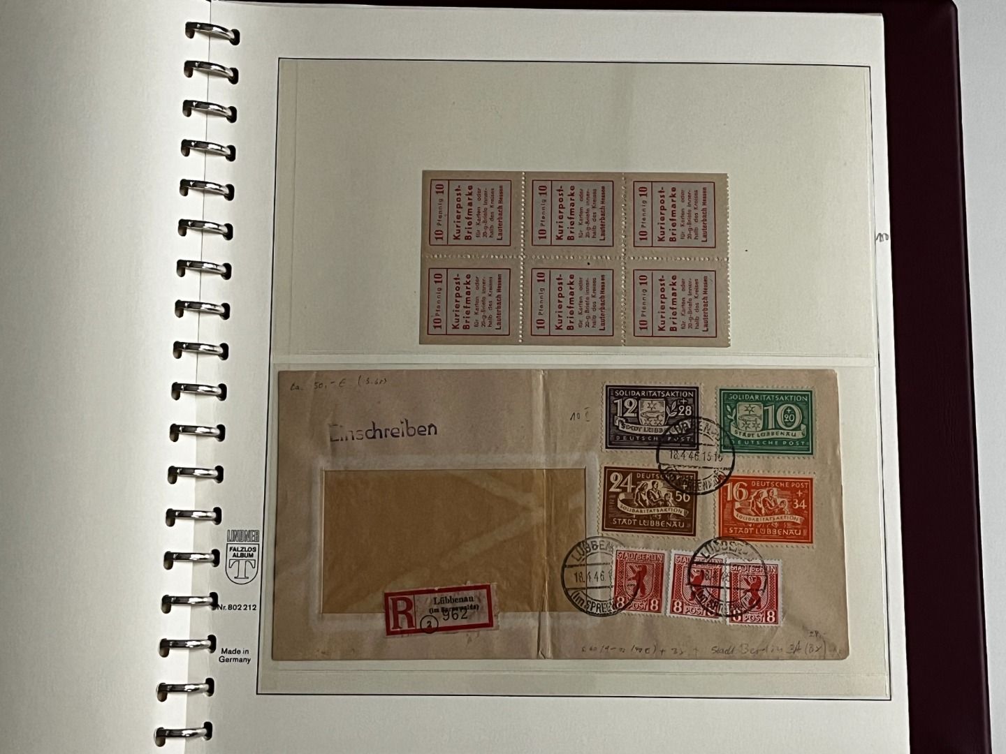 Lokalausgaben 1945 **/gest./Briefe: Gepflegte Sammlung im roten Lindner-Vordruckalbum, gesammelt wurde überwiegend postfrisch bis auf wenige gest. Ausgaben und Briefe, gesichtet wurde auch der Meißen-Block, sowie diverse andere geprüfte Werte.