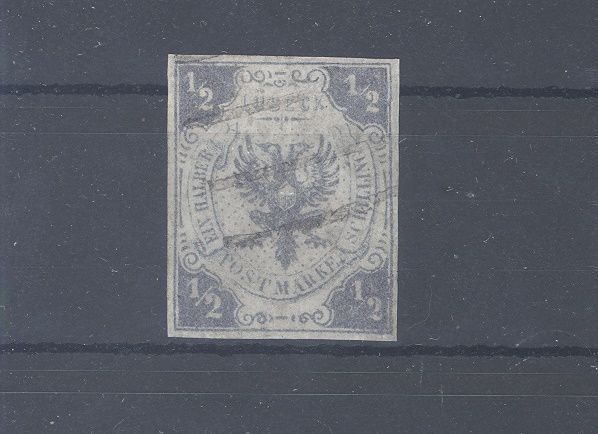 Lübeck Mi.Nr. 1, 1/2 S. Freimarke 1859/62 gestempelt, ausgebessert, optisch ein sehr ansehnlicher Wert. Der Wert ist geprüft mit Altprüfung Pfenniger, selten einmal angeboten!