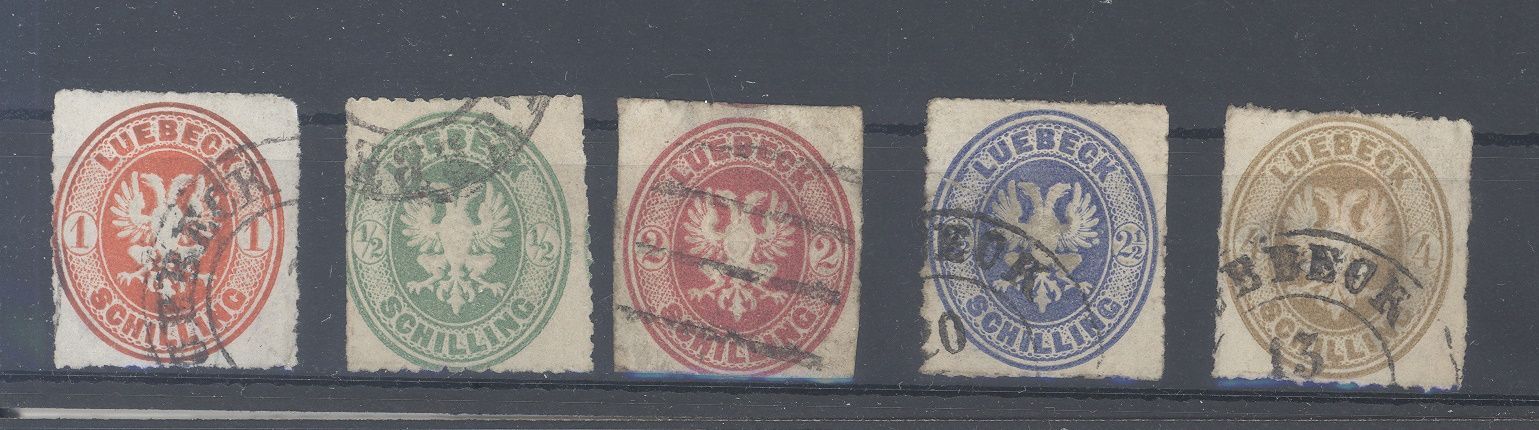 Lübeck Michel Nummer 8/12, Freimarken 1863/65 gestempelt mit Mängeln. Billigst!