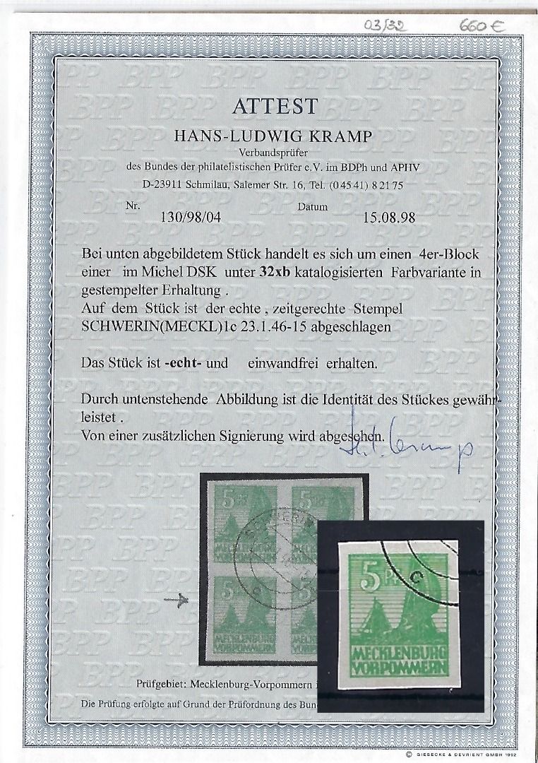 Meck. Vorpommern, Mi 32xb°, ursprünglich aus VB, FA Kramp BPP, ME 800€