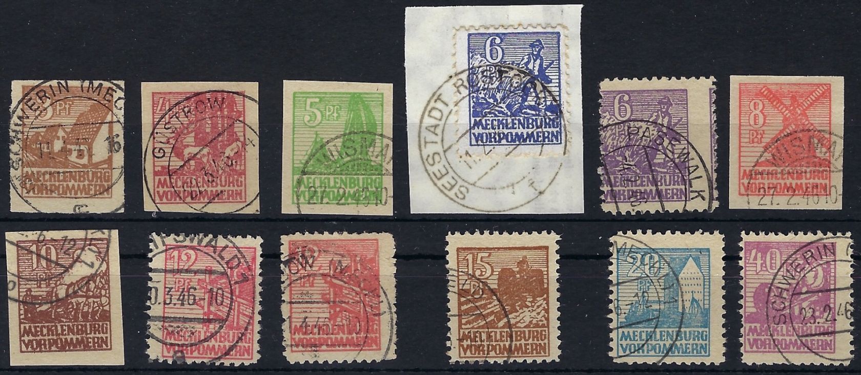 Meck. Vorpommern, gestempelte Partie von 12 Werten alle BPP gep., ME 426,50€ In der Reihenfolge: 29y, 31ya, 32ya, 33xb, 33yd, 34ya, 35y, 36yd, 36ye, 37ya, 38ya, 40ya