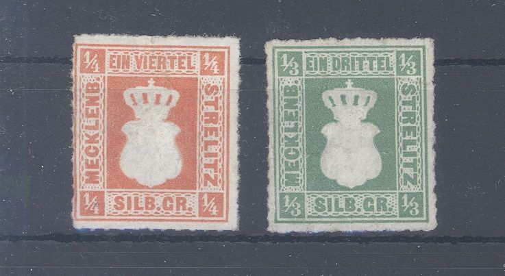 Mecklenburg Strelitz Michel Nummer 1/2 aus Freimarken 1864 ungebraucht, ungebraucht (*) gerechnet.