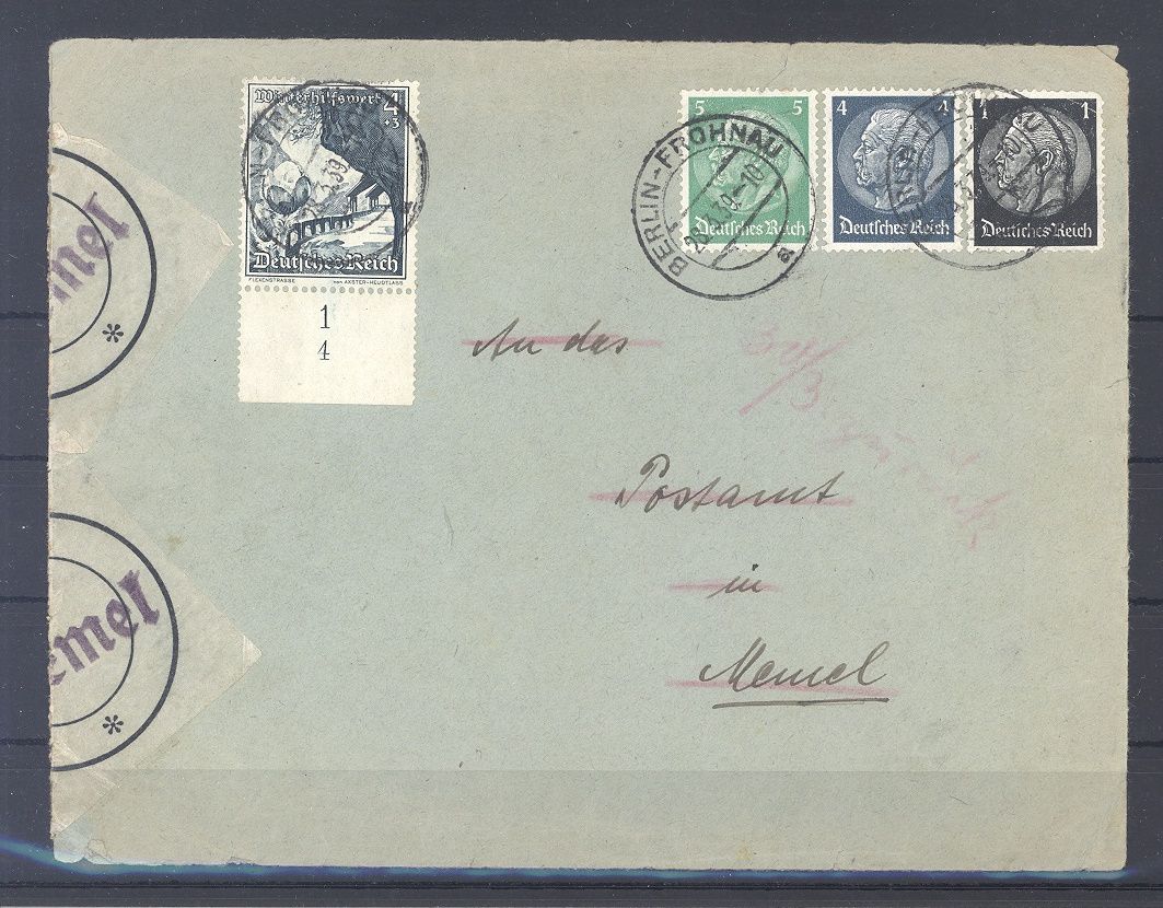 Memel, Brief 1939 aus Berlin an das Postamt in Memel mit Etiketten gelaufen. Nette Ergänzung zur Sammlung!