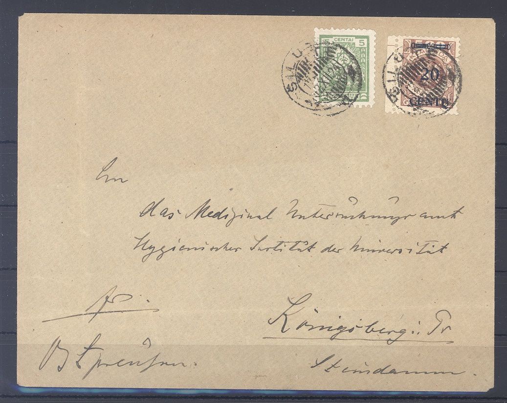 Memel Litauische Besetzung, sehr interessanter Brief in Bedarfserhaltung frankiert mit 20 Centu und einem litauischen Wert als MiF aus Silute nach Königsberg gelaufen. Nette Ergänzung zur Sammlung!