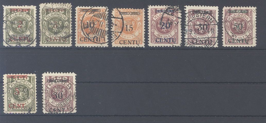 Memel Michel Nummer 167/73 und 173/74 aus Freimarken 1923 gestempelt.