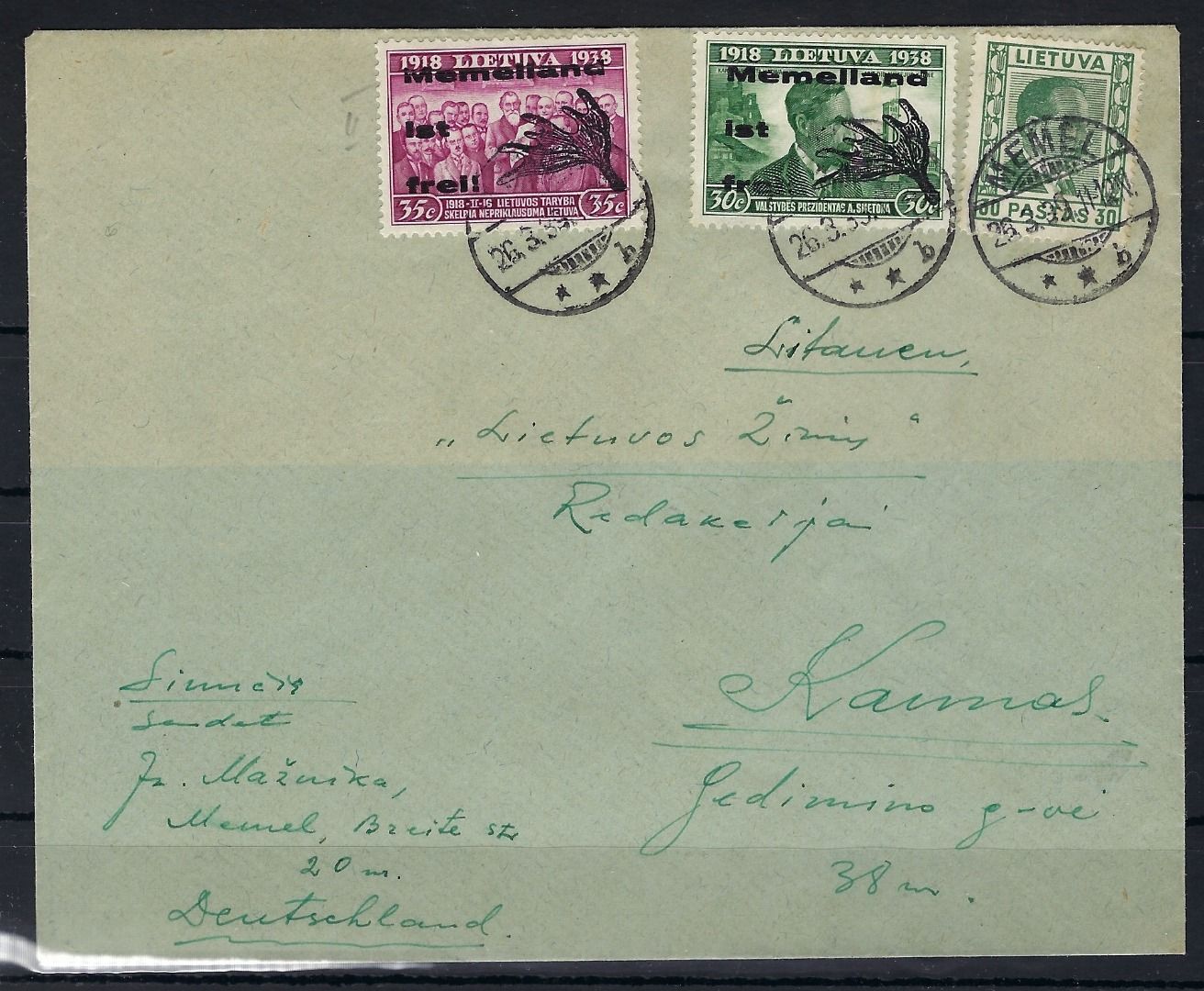 Memelgebiet Lokalausgabe 1939, Mi II - III / II Bedrfsbrief Memel nach Kaunas