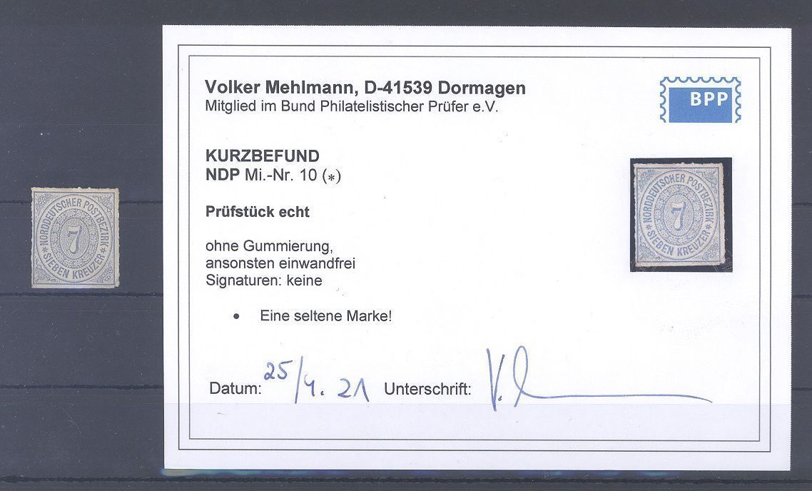 Norddeutscher Bund Michel Nummer 10, 7 Kreuzer Freimarke 1868 ungebraucht (*). Es liegt ein Befund BPP vor, hat bereits einiges gekostet, ist mit eingescannt, der Michel passt gar nicht, wie auch im Befund geschrieben eine seltene Marke!