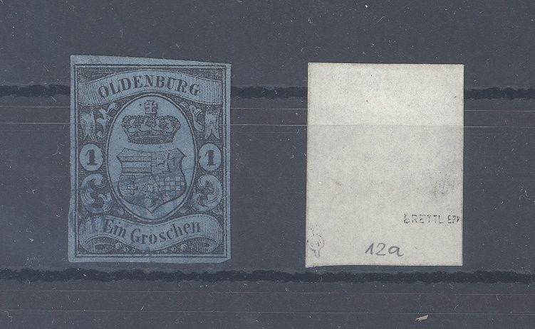 Oldenburg Michel Nummer 6 und 12a aus Freimarken 1859/61 gestempelt. Die Michel Nummer 12a ist geprüft BPP.