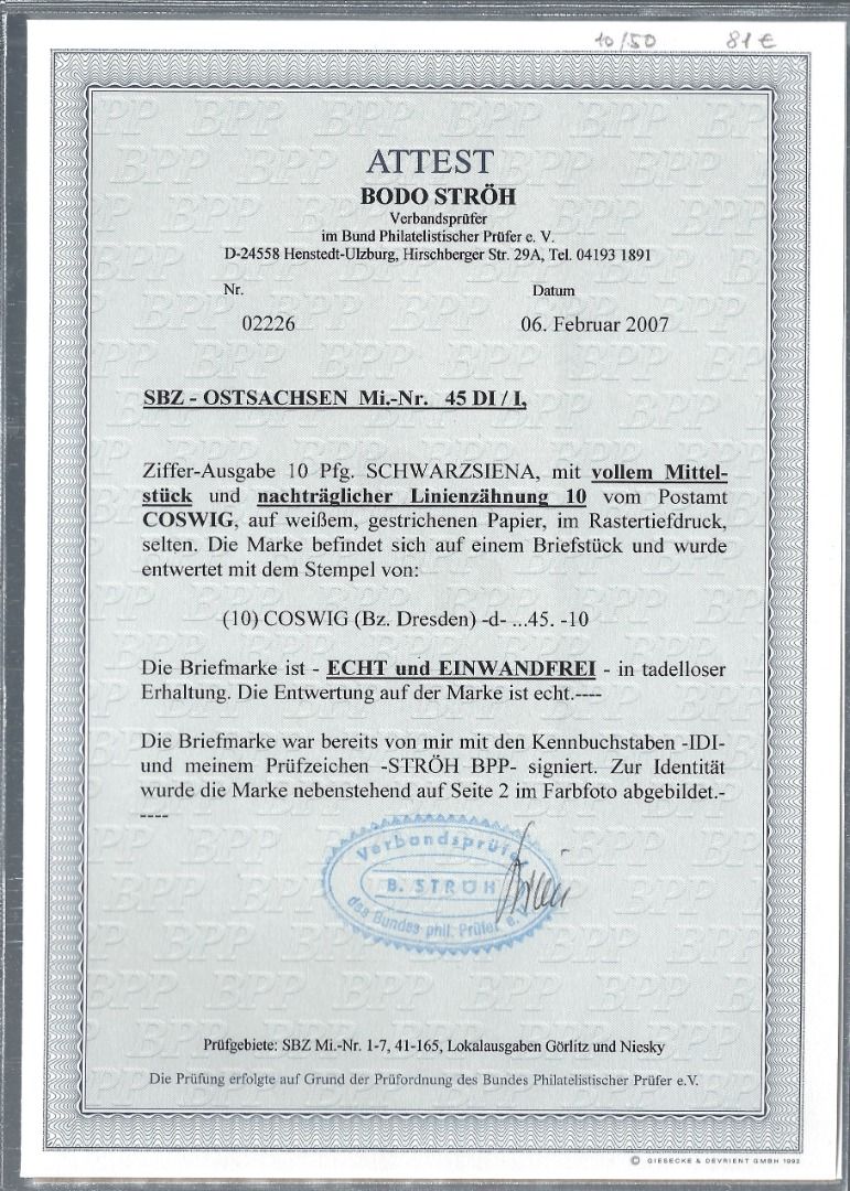 Ost Sachsen, Mi 45 DI / I auf Briefstück, mit FFA Ströh BPP, ME 300€