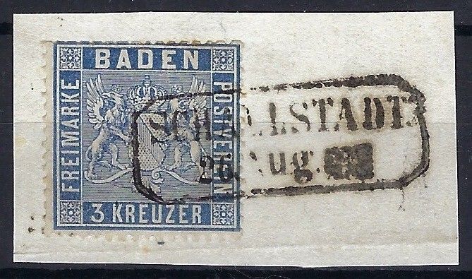 AD Baden 10 c auf Briefstück gepr. Stegmüller BPP, ME 250€