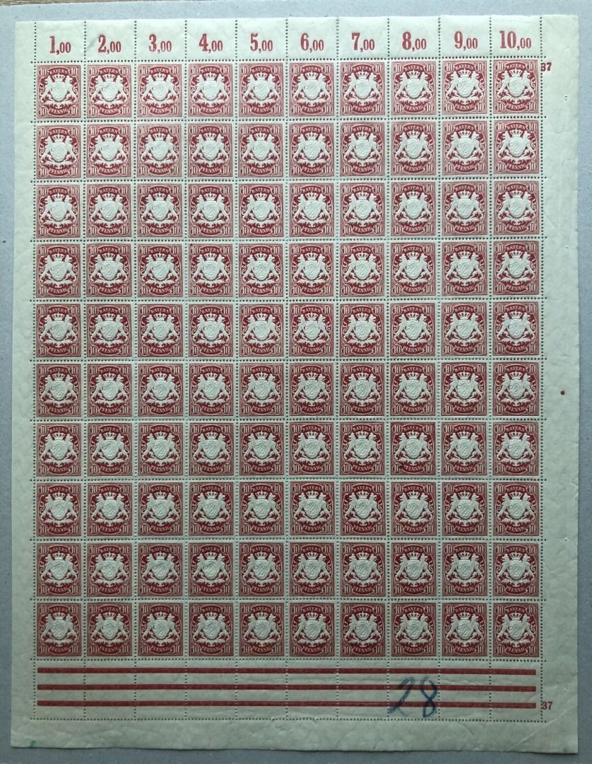 Bayern Mi 56 By ** 100er Bogen mit Leerfeldern unten, Oberränder teilweise angetrennt