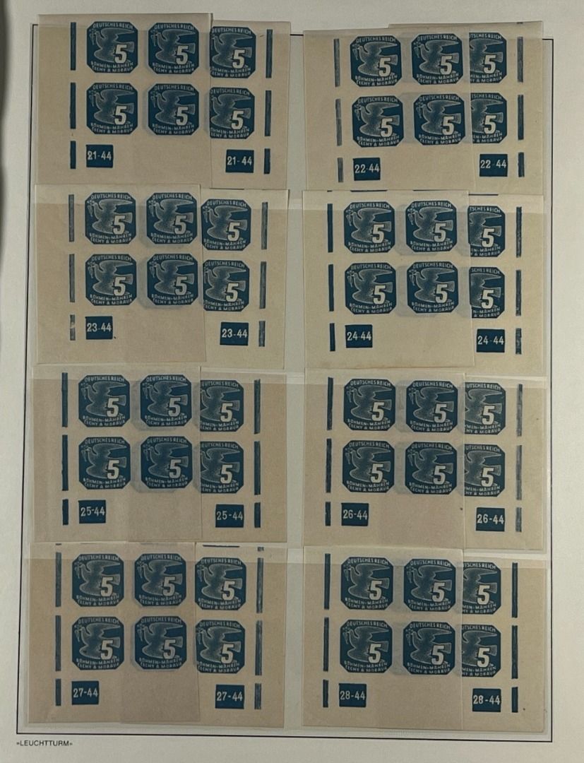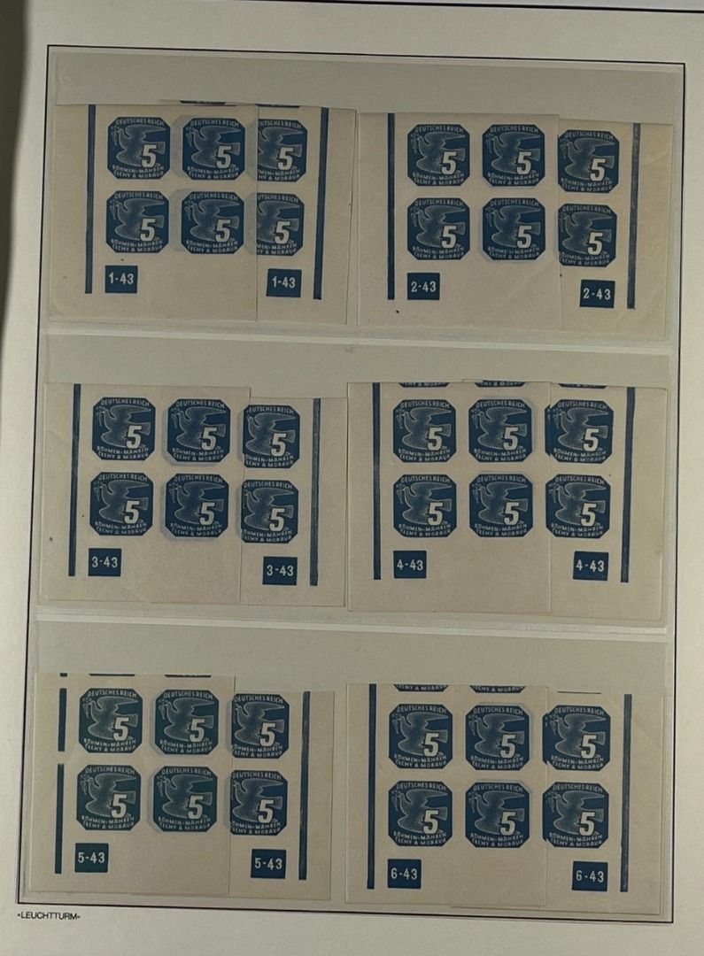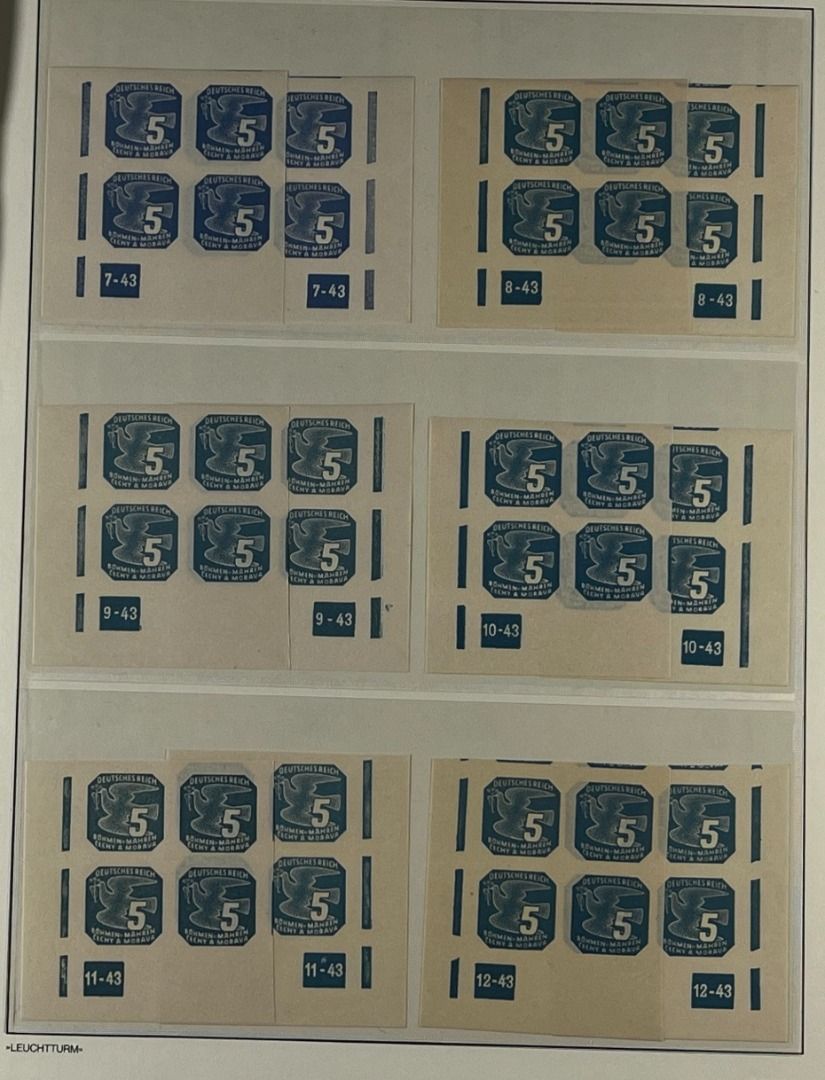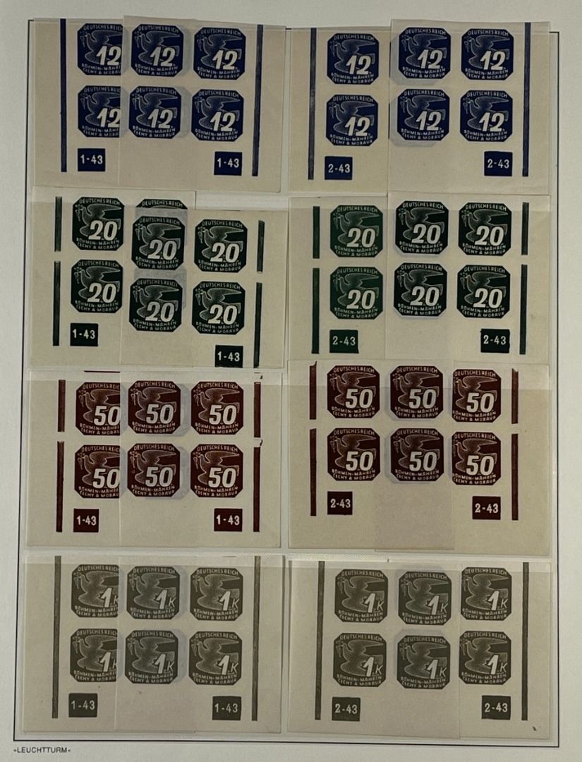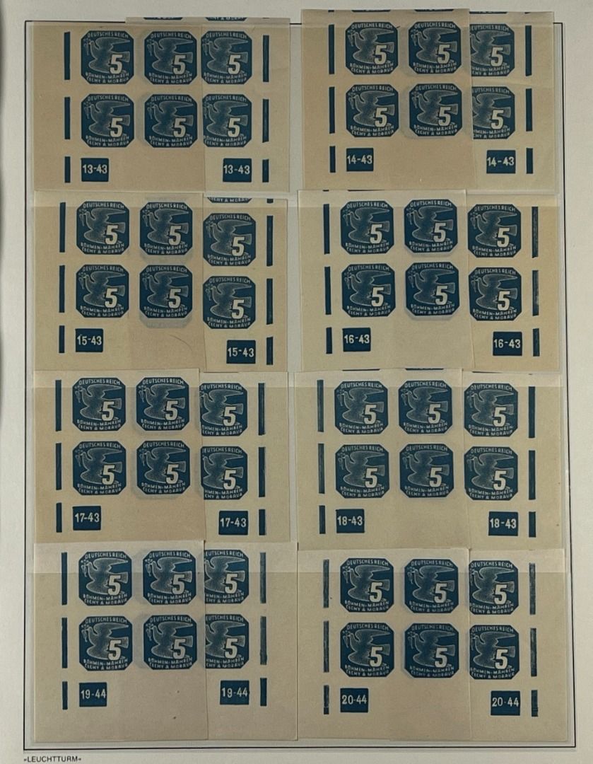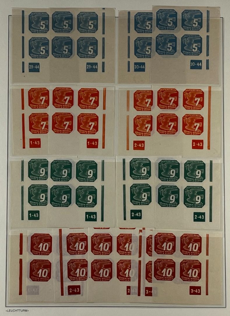 Böhmen und Mähren Zulassungsmarken, Teil-Spezialsammlung mit Pl.-Nr., Partie mit Bogenteilen aus der unteren Bogenecken links oder rechts mit Plattennummern, in postfrischer Erhaltung und guter Qualität. Die Sammlung ist vollständig abgebildet