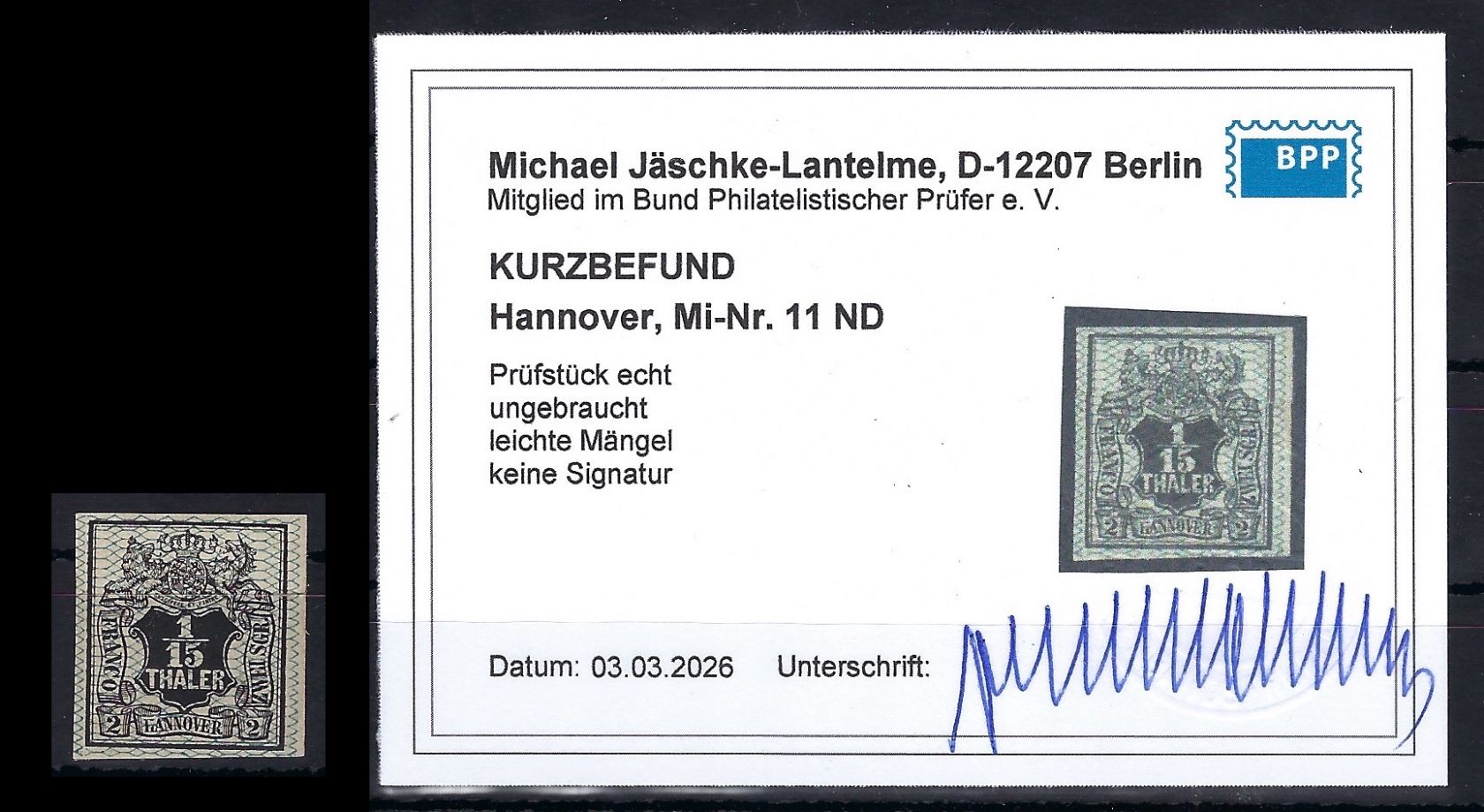 Michel Nummer 11 als amtlicher Neudruck für die königliche Familie, in ungebrauchter Erhaltung mit O´Gummi, rechts kleiner Einriss, mit KB Jäschke-Lantelme BPP