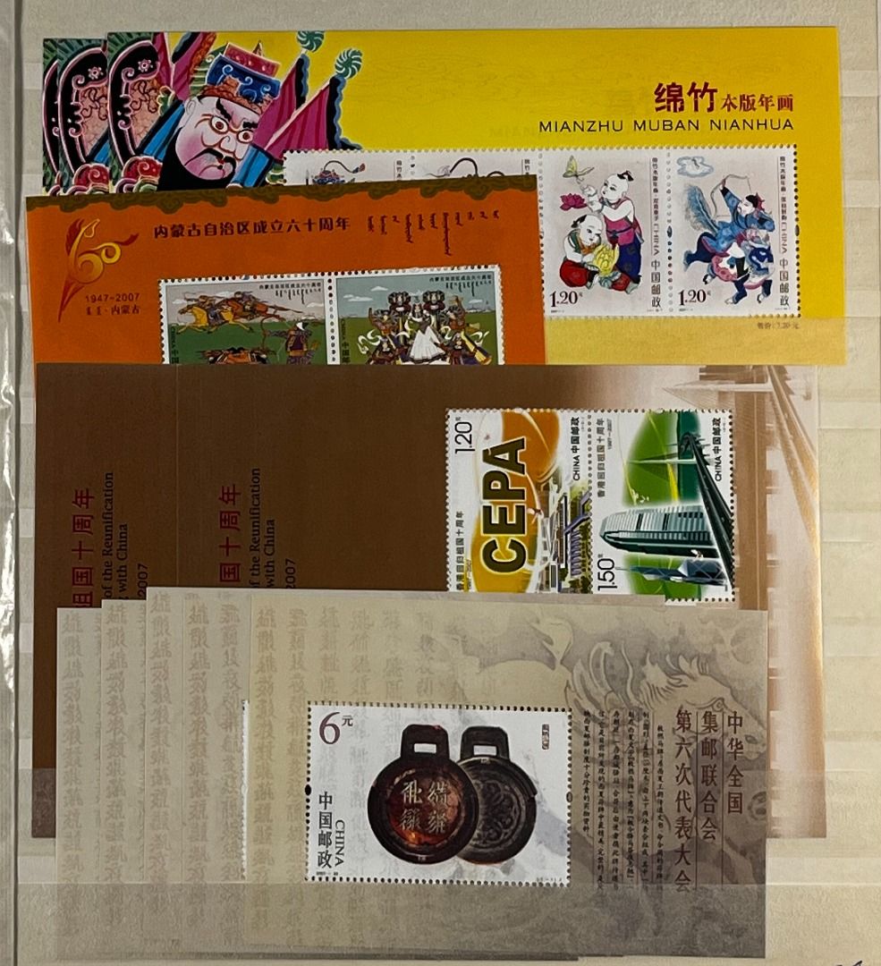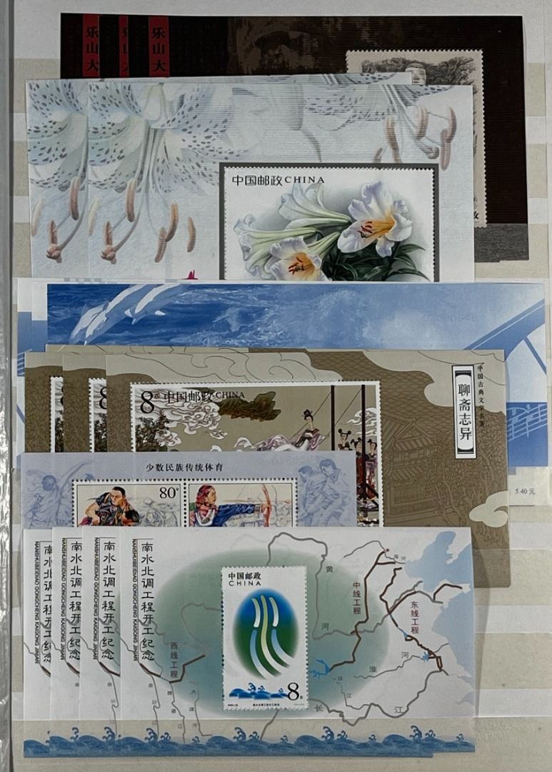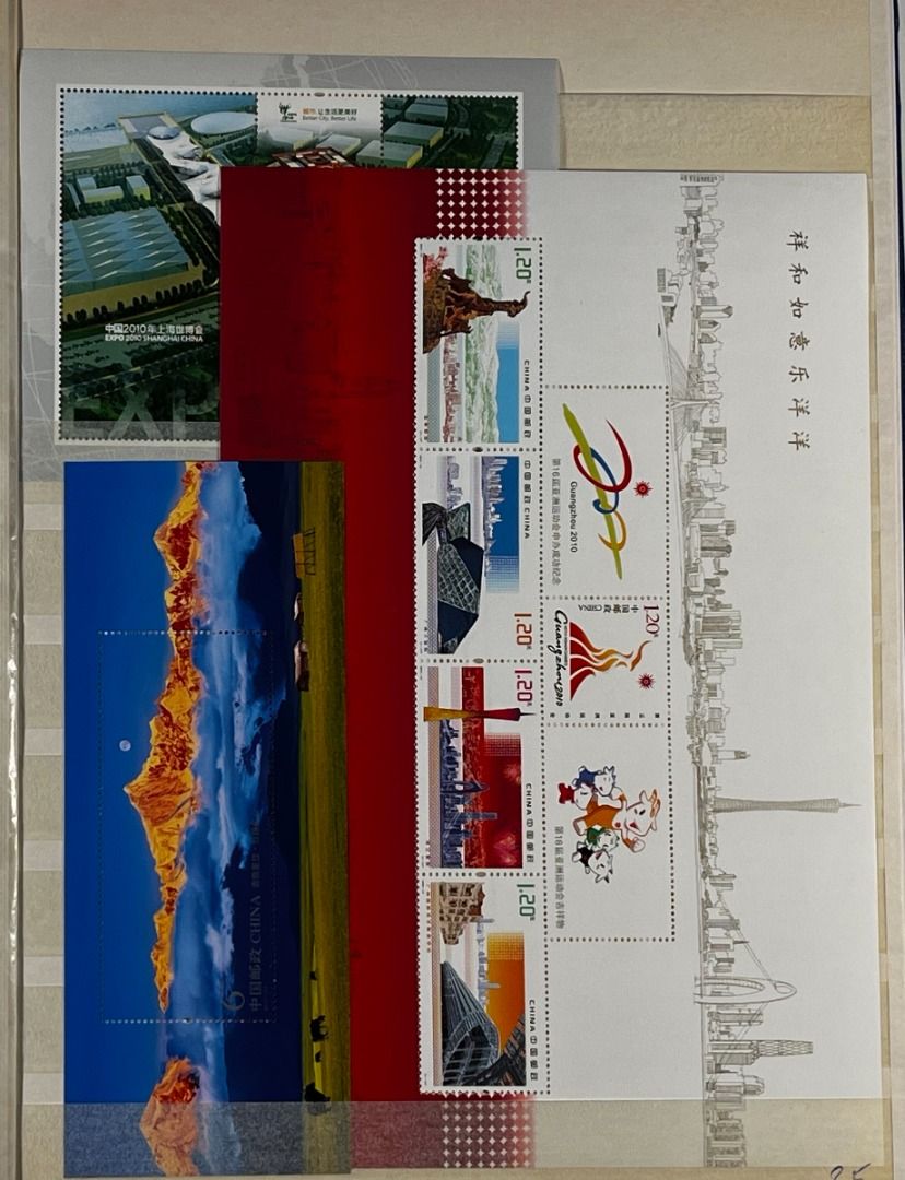 VR-China 1999–2012, umfangreiches Blocklager in so gut wie nur postfrischer Erhaltung, insgesamt 24 Blockausgaben. Im Anschluss einige Briefmarken. Insgesamt gute bis einwandfreie Qualität. Die Sammlung ist vollständig abgebildet.