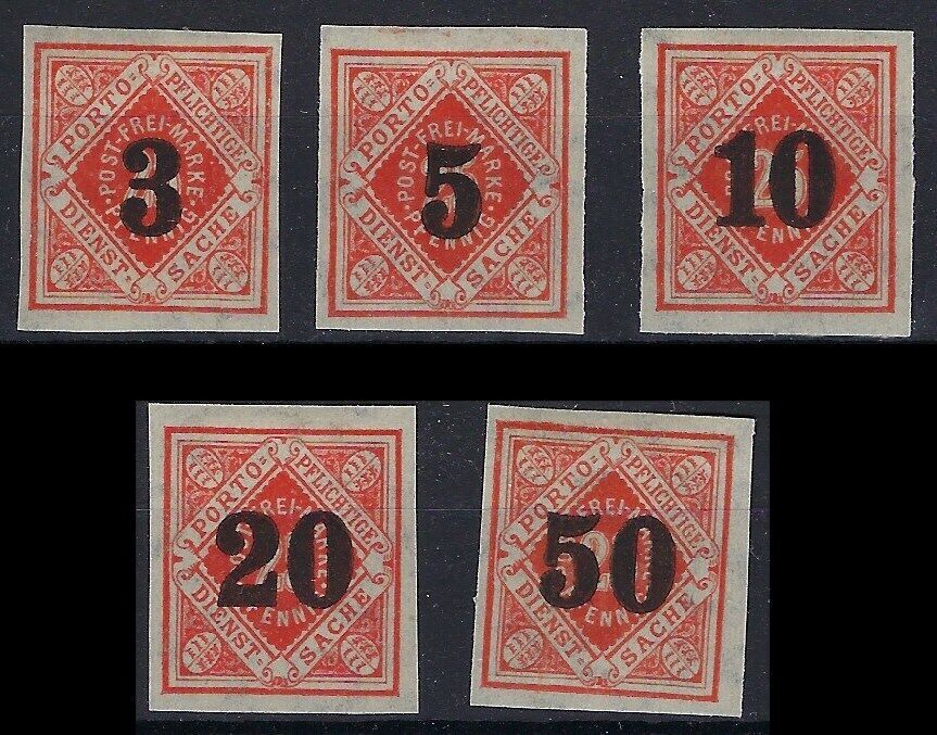 Württemberg Dienst Mi 184-188 PU ungebraucht mit Originalgummi