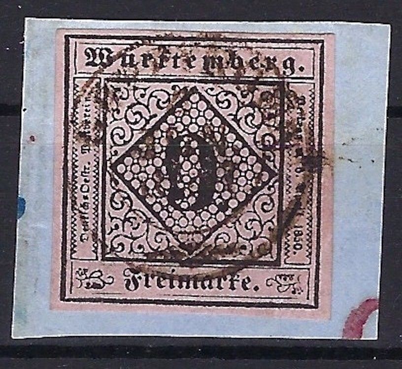Württemberg Mi 4b° breitrandig auf Briefstück, signiert