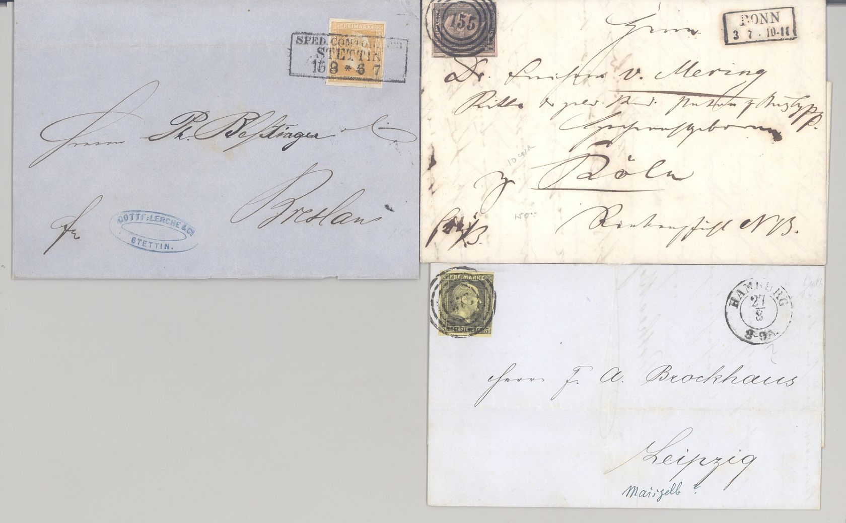 Preußen, drei verschiedene Briefe mit u.a. einem Speditions Brief als Posten. Nette Ergänzung zur Sammlung!