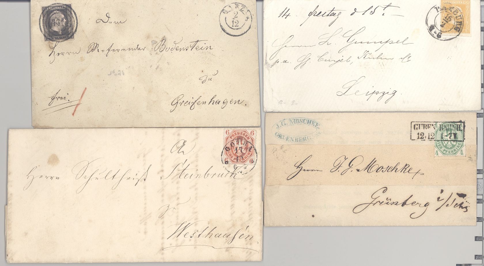 Preußen, vier Briefe mit schönen Frankaturen als Posten. Nette Ergänzung zur Sammlung.
