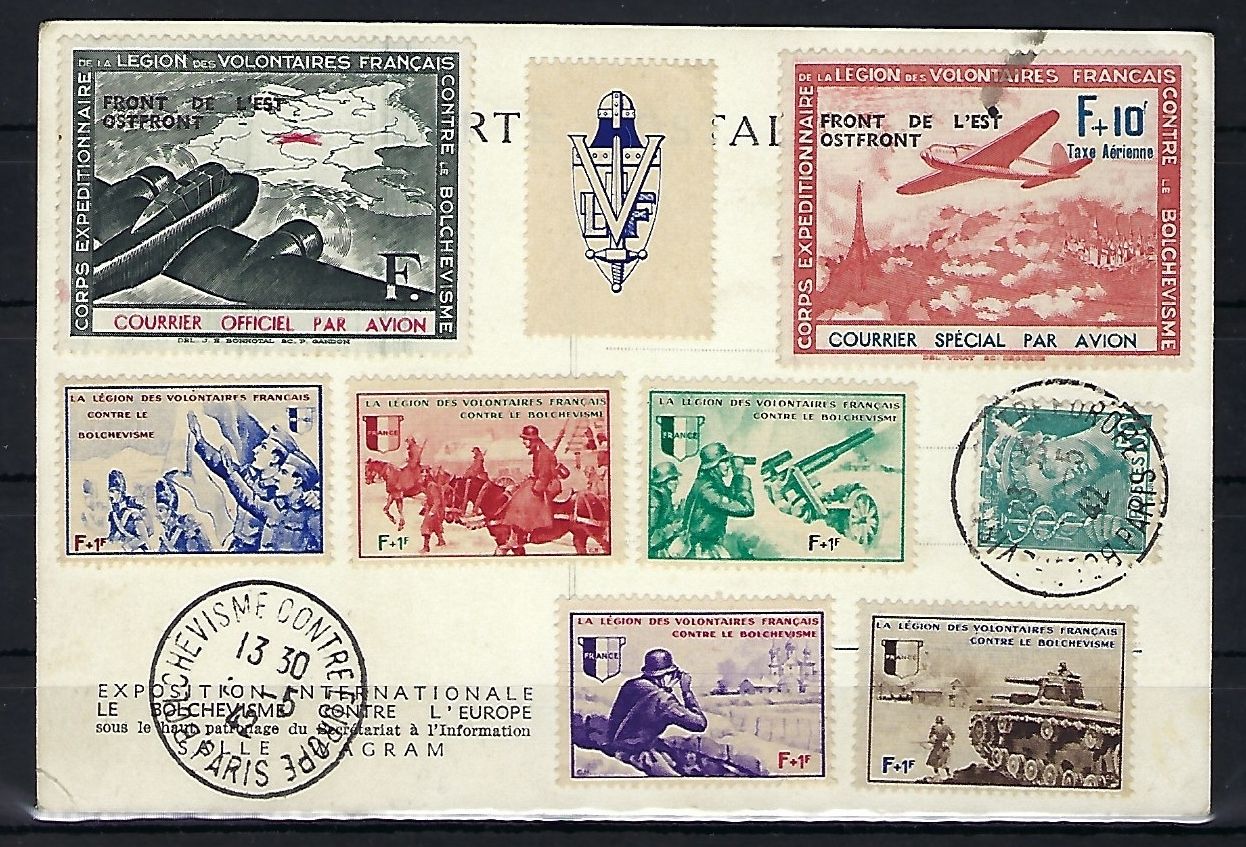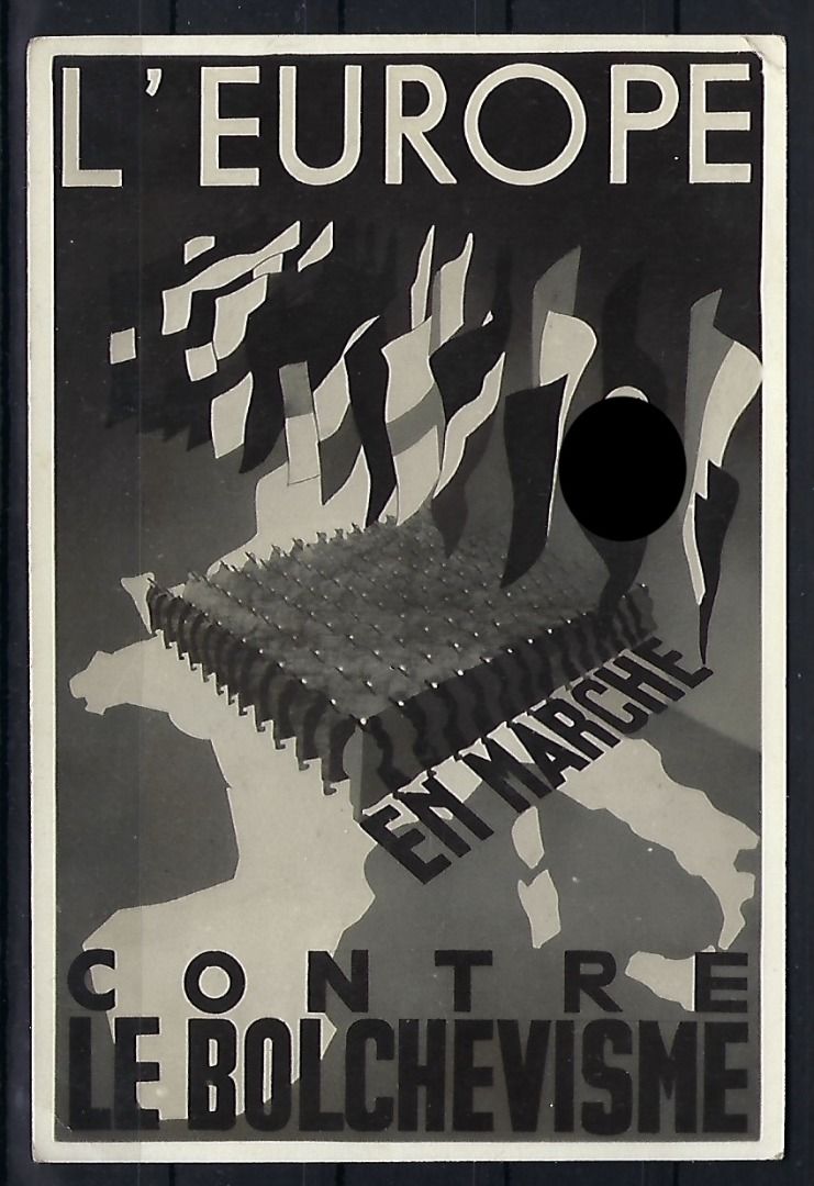 Propagandakarte " Europa gegen den Bolschewismus“, rückseitig einige Briefmarken