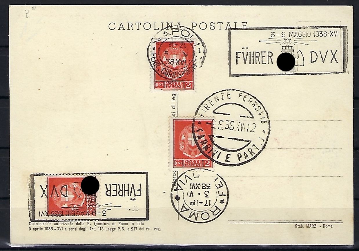 Propagandakarte Hitler-Mussolini Treff in Rom 3.-9. Mai 1938