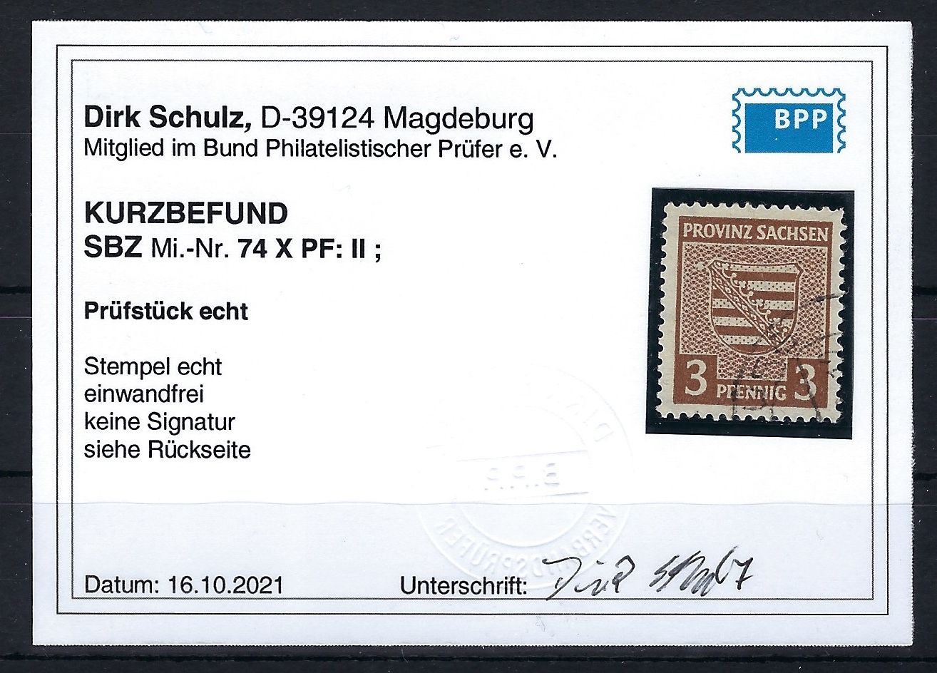 Provinz Sachsen Mi 74 X mit PF II °, mit KB Schulz BPP, ME 180€