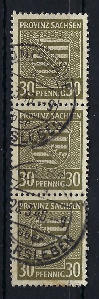 Provinz Sachsen Mi 83 X b ° senk. Dreierstreifen gep. Stroh BPP, ungefiltert und in einwandfreier Qualität