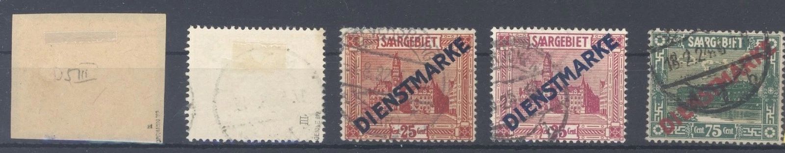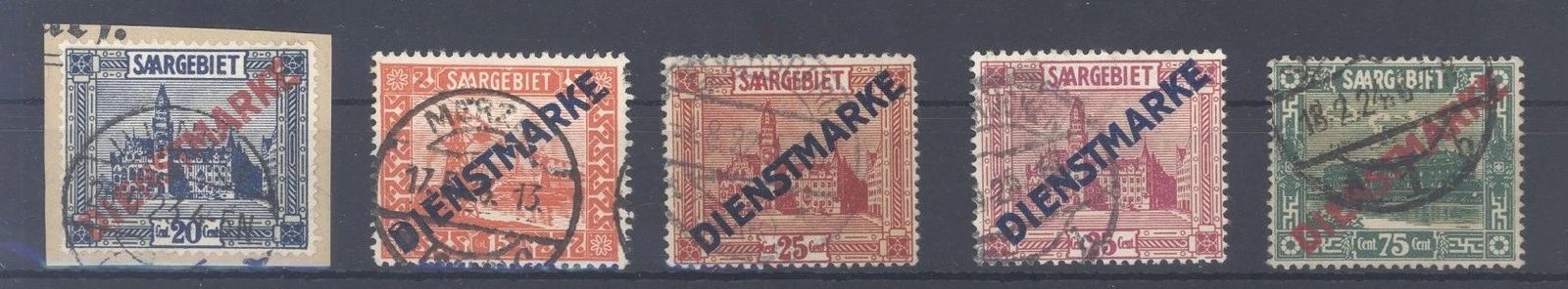 Saargebiet Dienstmarken, 5 verschiedene gestempelte Abarten