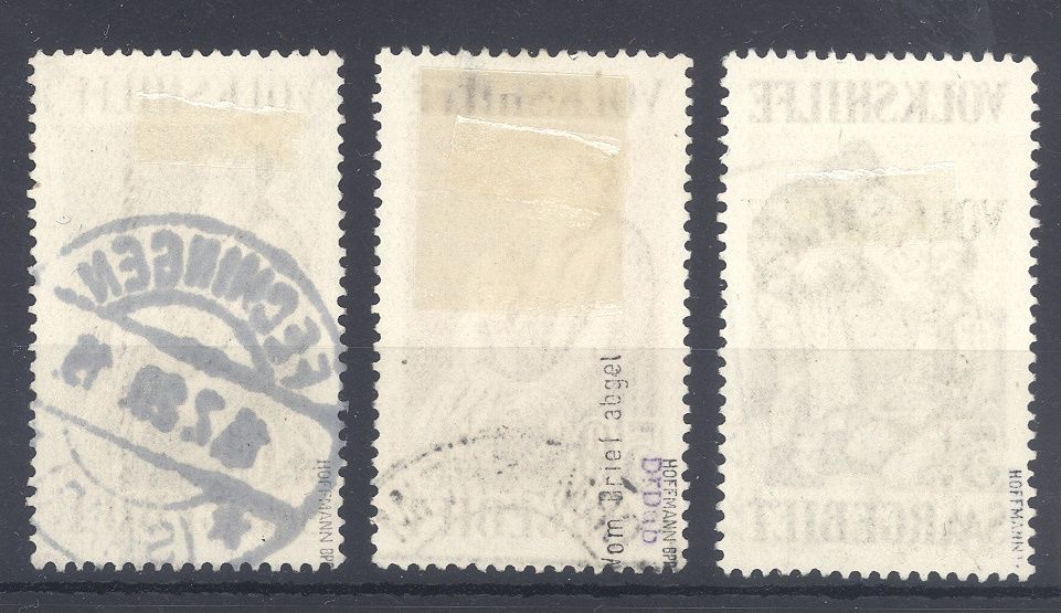 Saargebiet Michel Nummer 128, 129 und 133 aus Freimarken 1928 gestempelt. Jeder Wert ist geprüft mit Altprüfung.