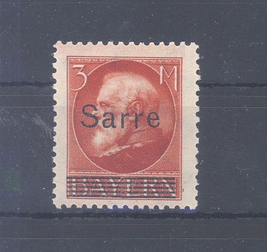 Saargebiet Michel Nummer 29, 3 Mark Freimarke 1920 mit leichtem Farbabklatsch rückseitig, sonst ordentlich. Der Wert ist geprüft mit Altprüfung.
