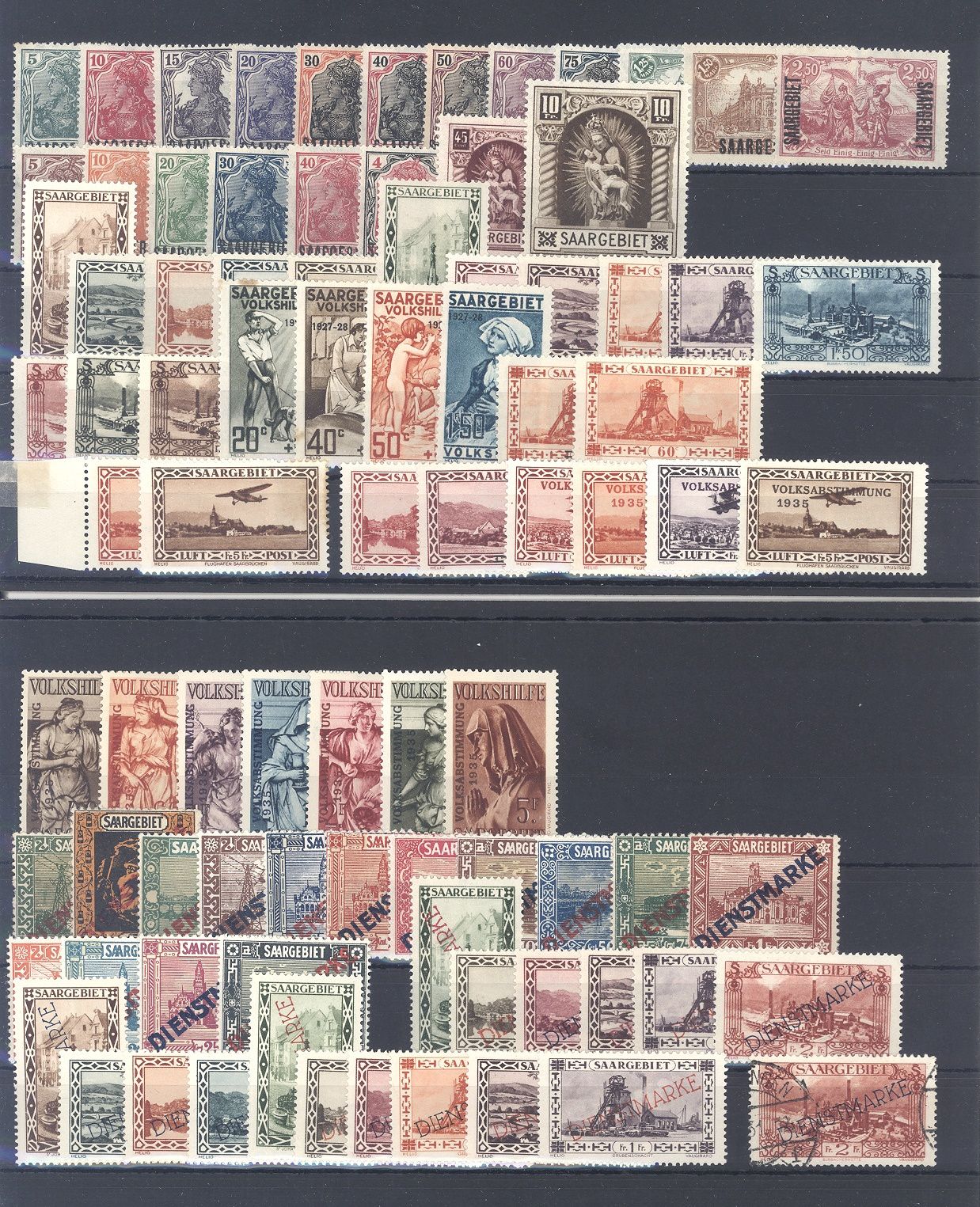 Saargebiet, umfangreicher */** Posten auf zwei Steckkarten, dabei auch bessere Sätze, einfach zusammengesteckt. Vollkommen unberechnet, sollte ein nettes Schnäppchen sein...