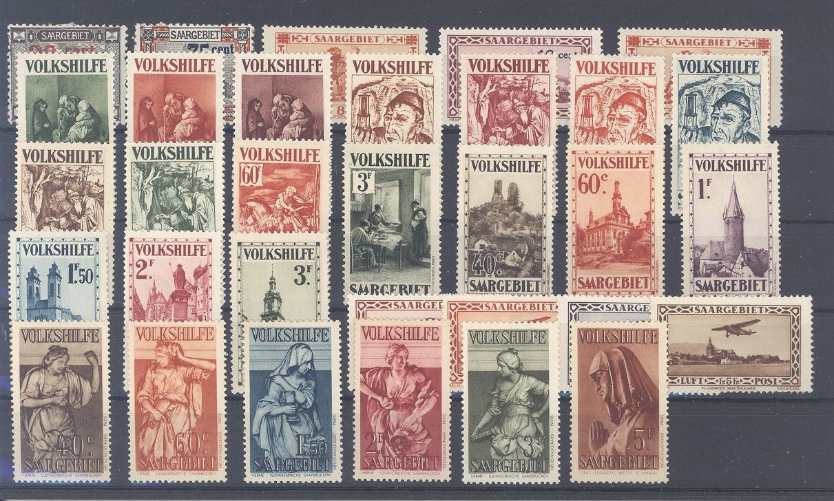 Saargebiet, recht umfangreicher ungebrauchter Posten meist Nothilfe auf Steckkarte, einfach zusammengesteckt mit auch Michel Nummer 144/49 und 171/77. Sollte ein nettes Schnäppchen sein .