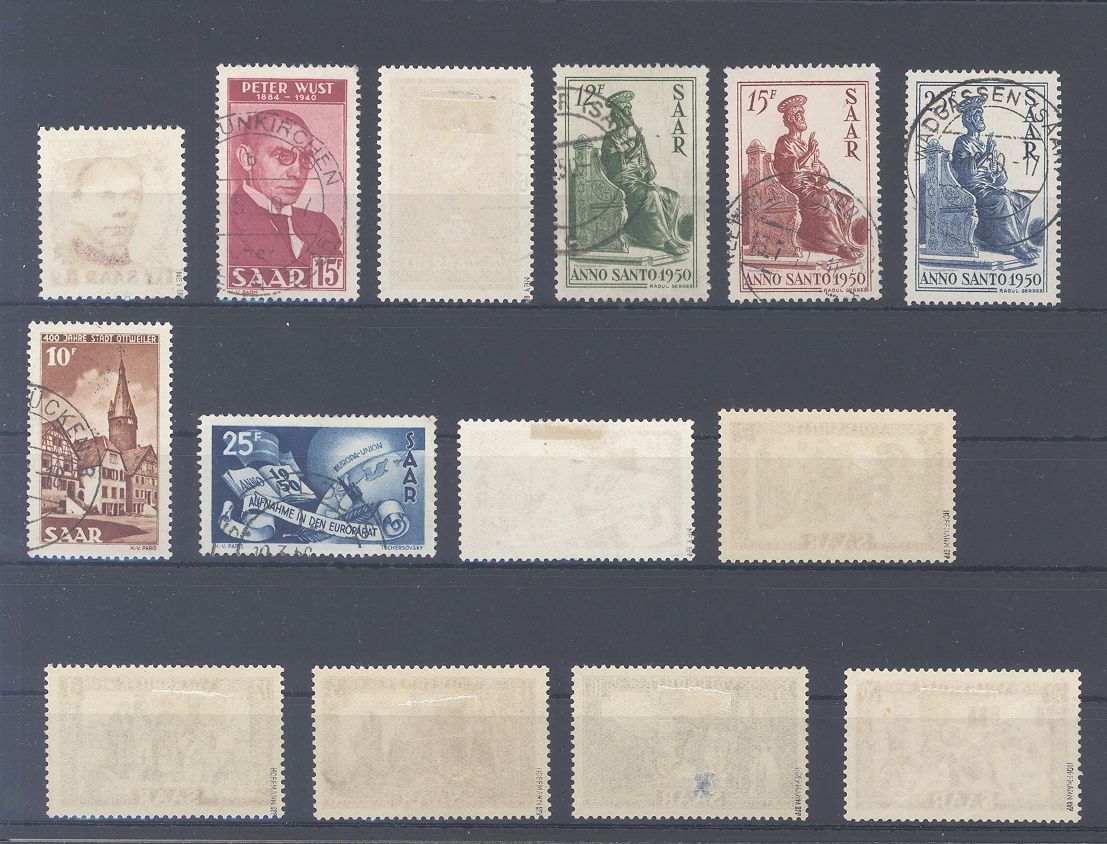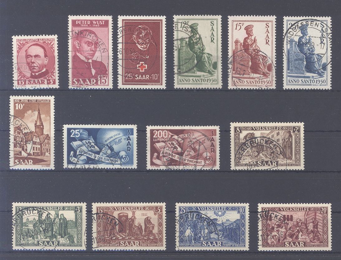 Saarland Michel Nummer 289/303 Jahrgang 1950 fast komplett gestempelt, es fehlt nur die Michel Nummer 291, die Michel Nummer 302 hat eine helle Stelle, sonst ordentlich. Die wichtigen Michel Nummern 298 und 299/303 sind geprüft mit Altprüfung.