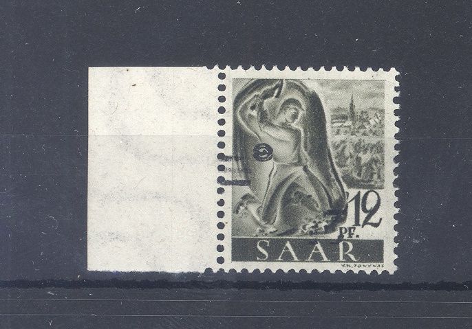 Saarland Michel Nummer 229y I K I, die 12 Pfg. Freimarke aus dem Urdrucksatz mit kopfstehendem Aufdruck**. Der Wert ist signiert, nette Ergänzung zur Sammlung.