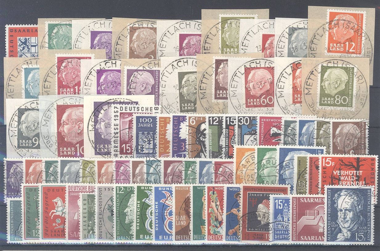 Saarland, Michel Nummer 379/448, das Saarland als Teil der BRD komplett gestempelt, dabei Michel Nummer 380/99 auf sehr schönen Briefstücken.