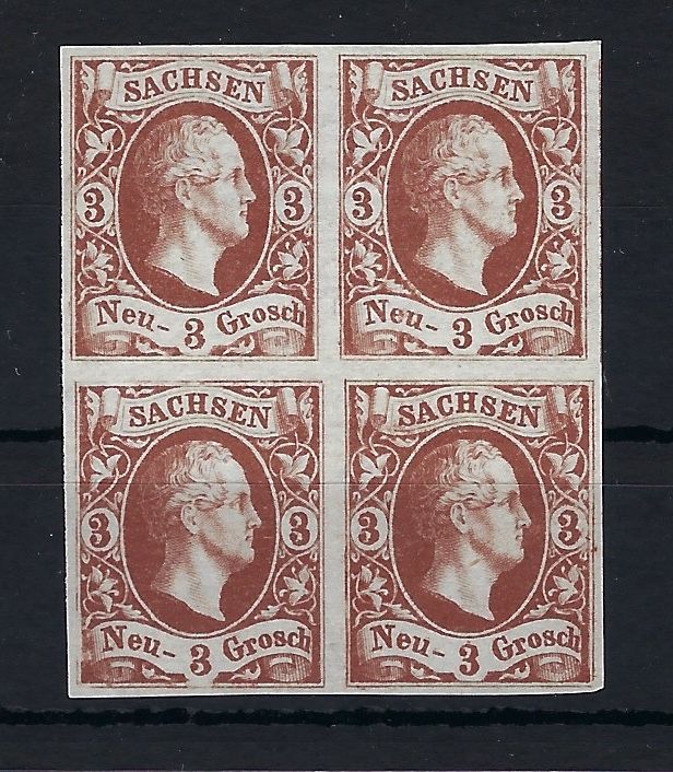 Sachsen, Mi 6 Viererblock Probedruck, ohne Gummierung wie verausgabt
