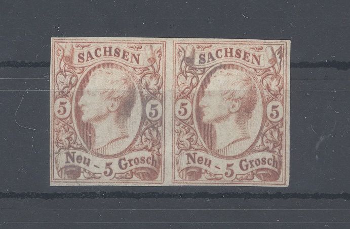 Sachsen Michel Nummer 12, 5 Groschen Freimarke 1856 im vollrandigen ungebrauchten Paar. Selten einmal angeboten!