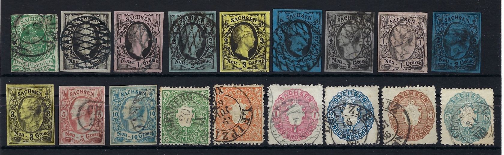 Sachsen, Zusammenstellung Mi 2 - 19 gestempelt und in guter Qualität,