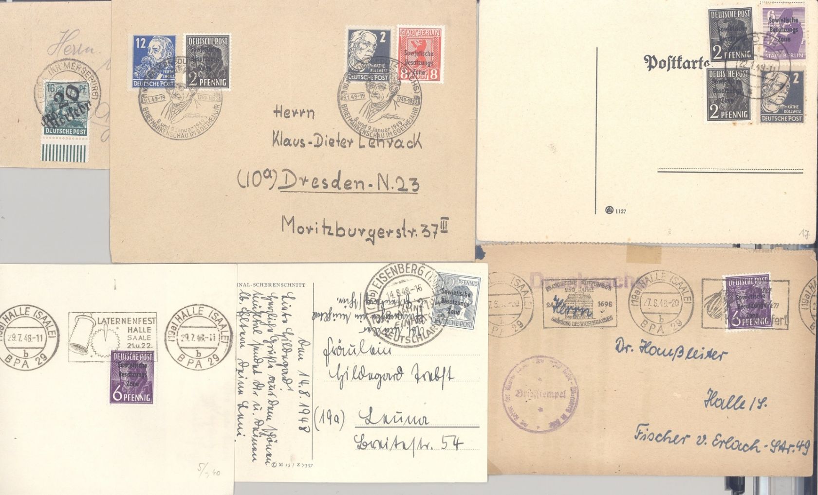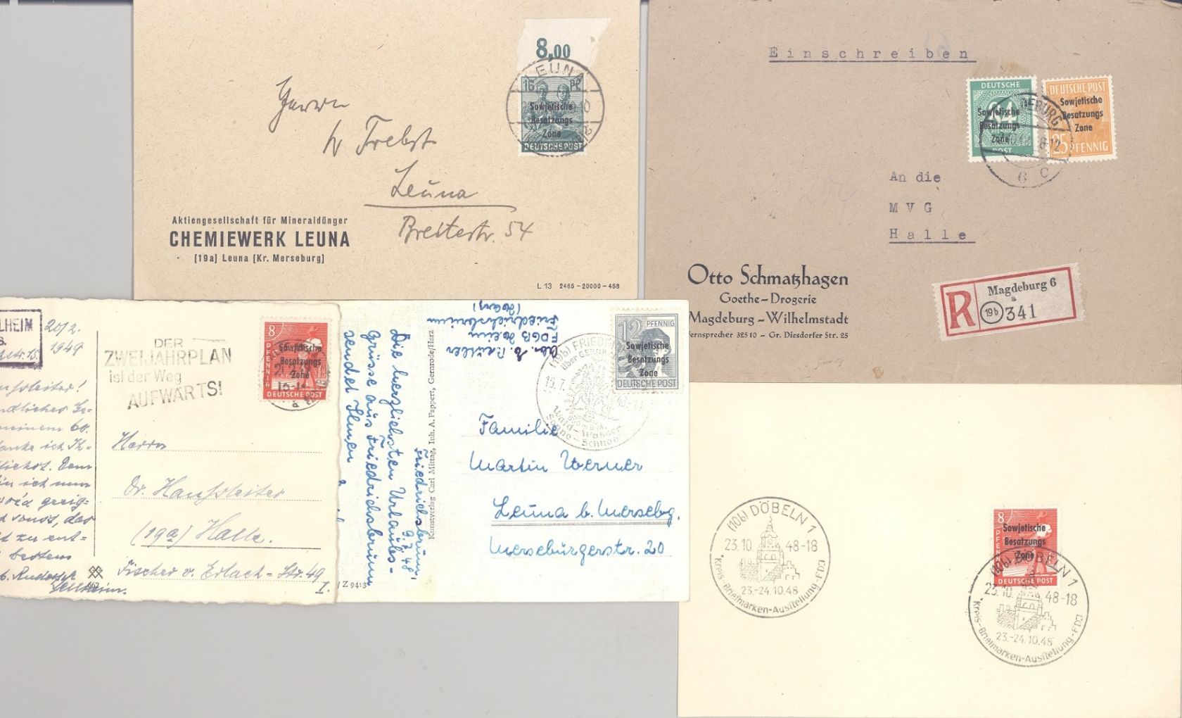 SBZ, elf verschiedene Belege aus Michel Nummer 166/97 als Posten, dabei ein Handstempel Beleg, eine Oberrand EF und schöne SST. Nette Ergänzung zur Sammlung...