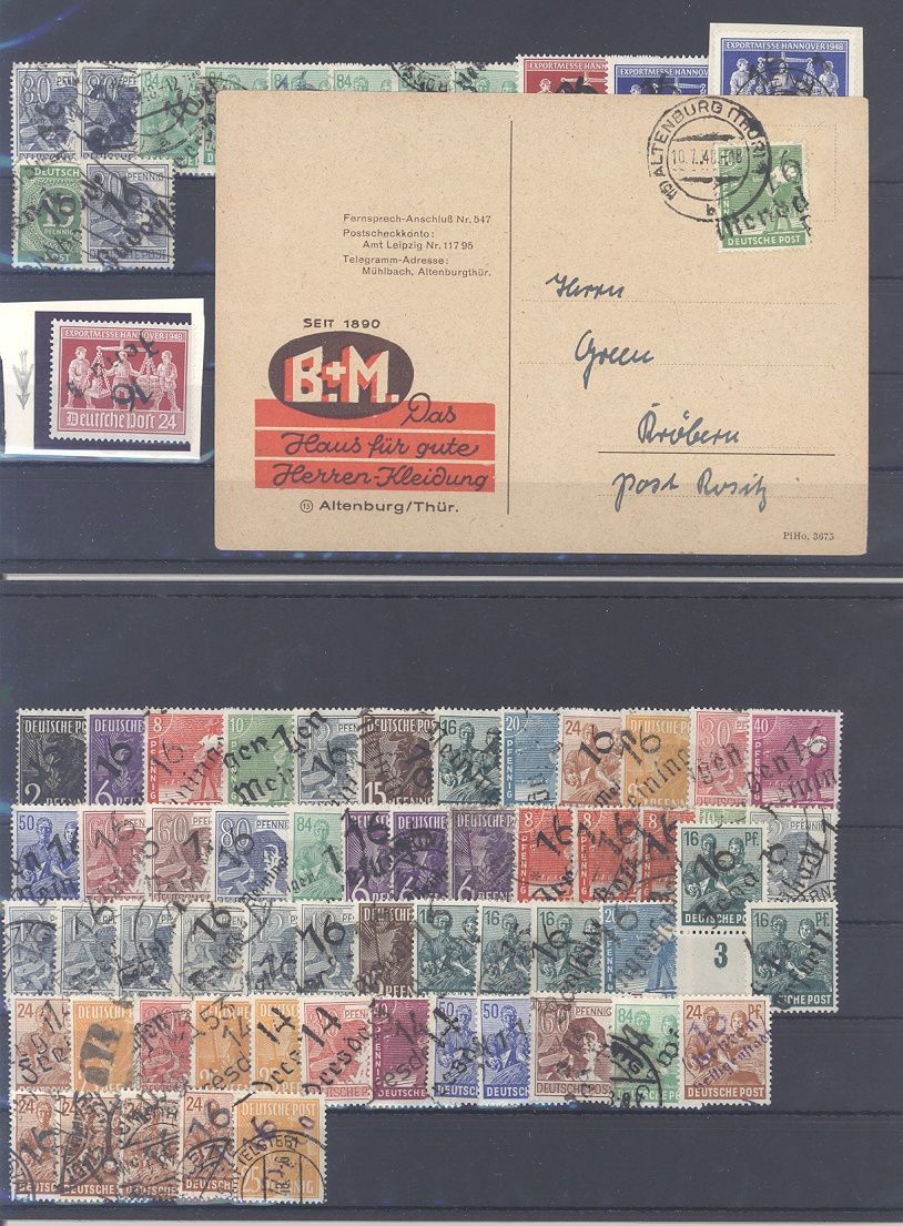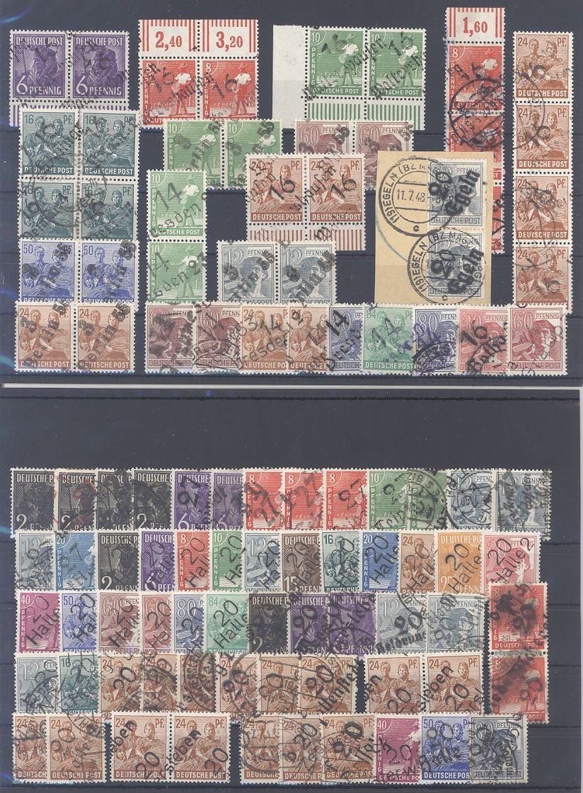 SBZ, enormer */**/gestempelter Posten Handstempelüberdrucke auf sieben Steckkarten, einfach zusammengesteckt. Einige Werte sind geprüft mit Altprüfung, die meisten aber nicht, sollte aber trotzdem sehr chancenreich sein und sicherlich eine reichhaltige Fundgrube...