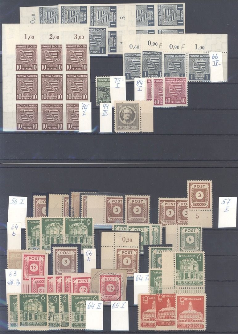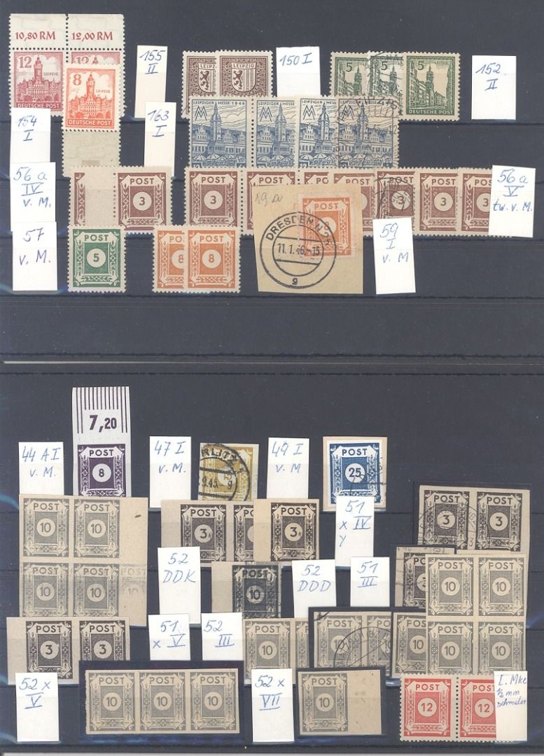 SBZ, umfangreicher **/ gestempelter Spezialposten auf sechs Steckkarten, einfach zusammengesteckt. Vollkommen unberechnet, die Zettel des Sammlers sind dabeibelassen, schöner Stöberposten.